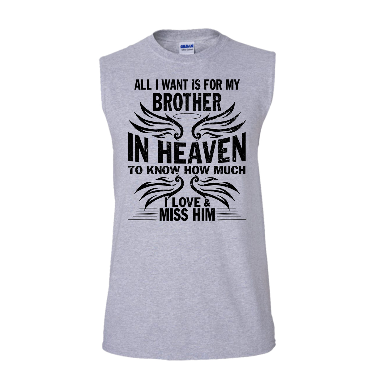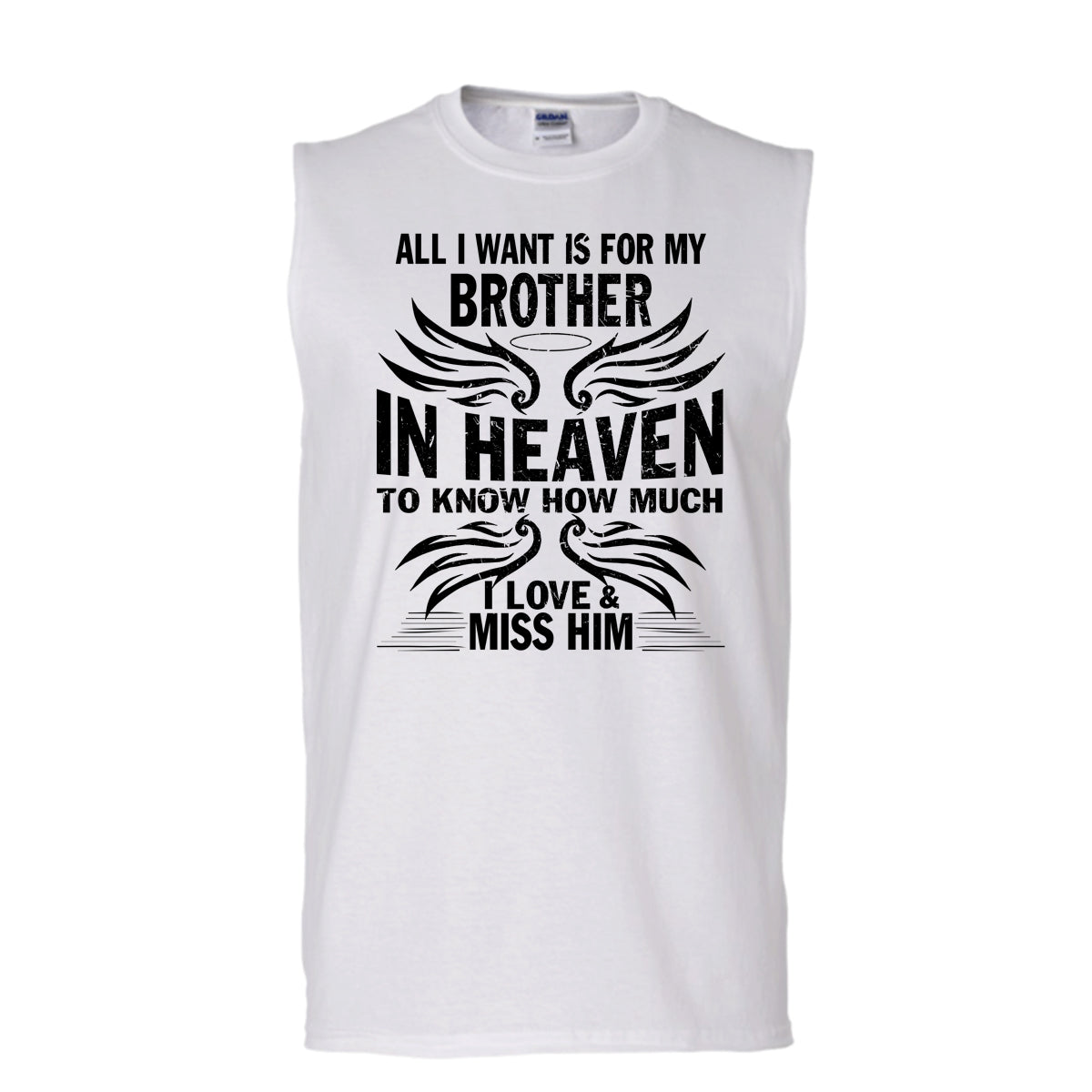 All I want Is For My Brother In Heaven T Shirt, I Love & Miss Him T Shirt, Awesome t-shirts (Men's Cotton Sleeveless)