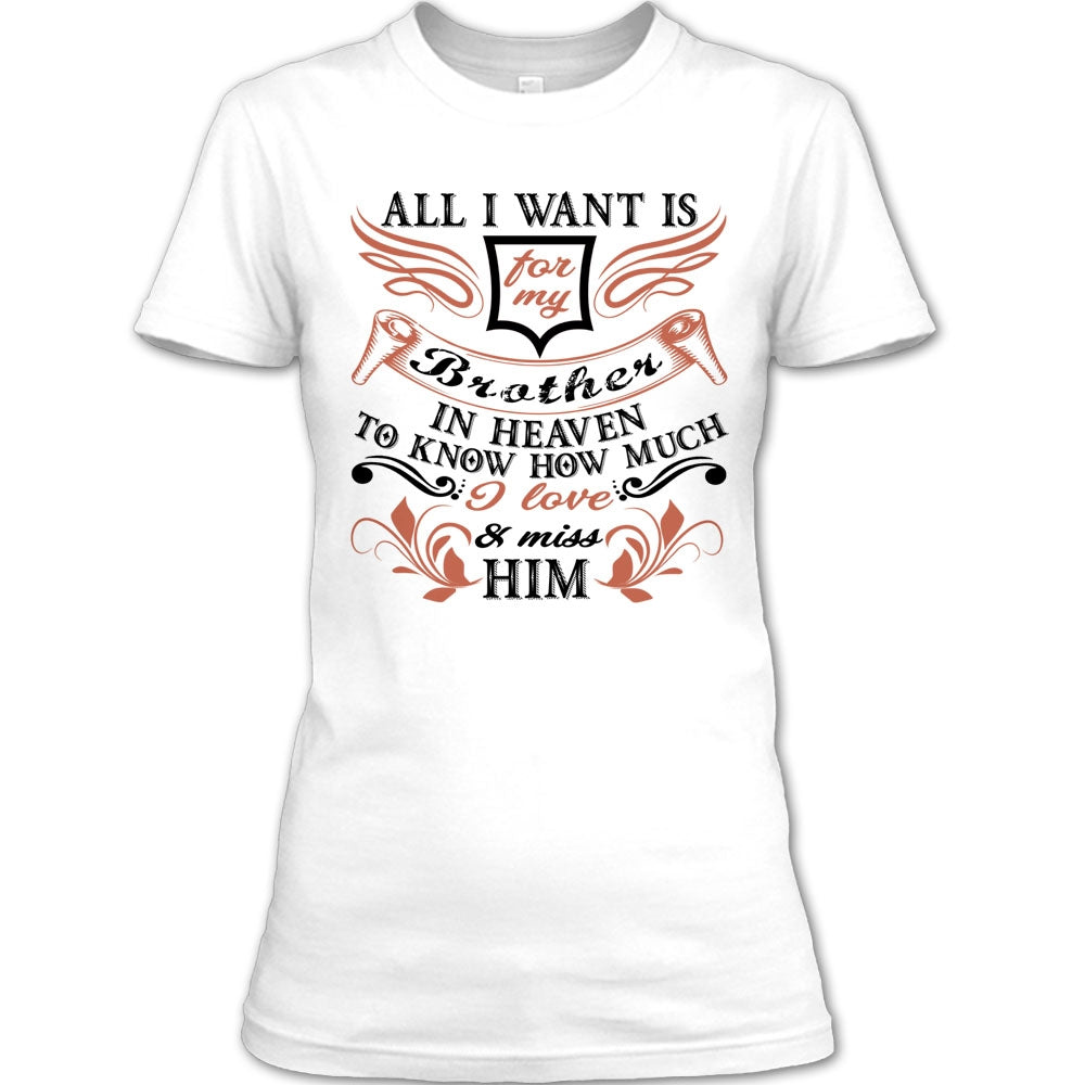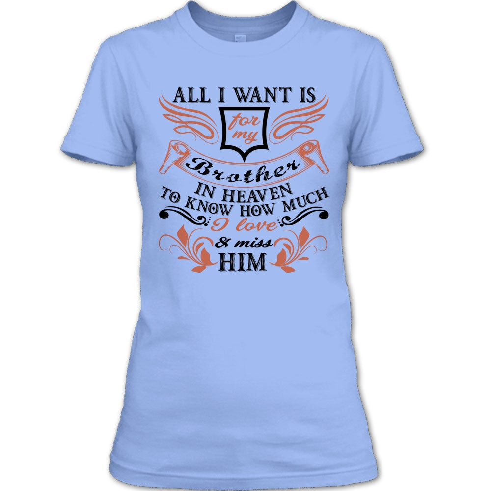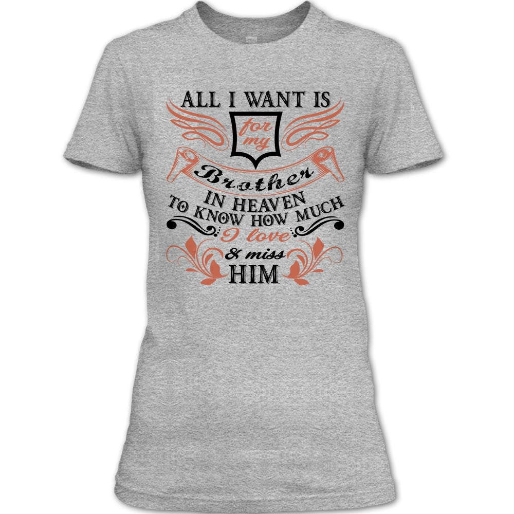All I Want Is For My Brother T Shirt, I Love & Miss Him T Shirt