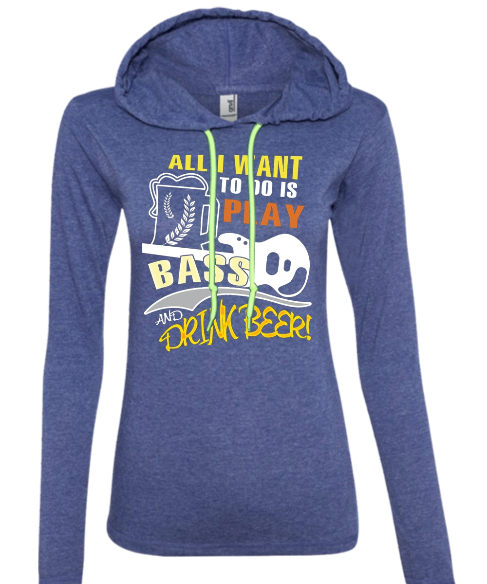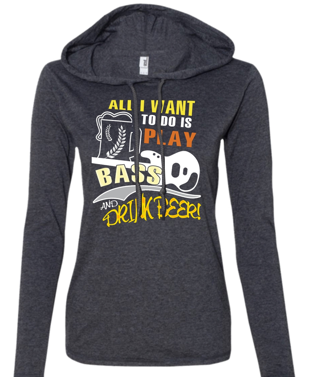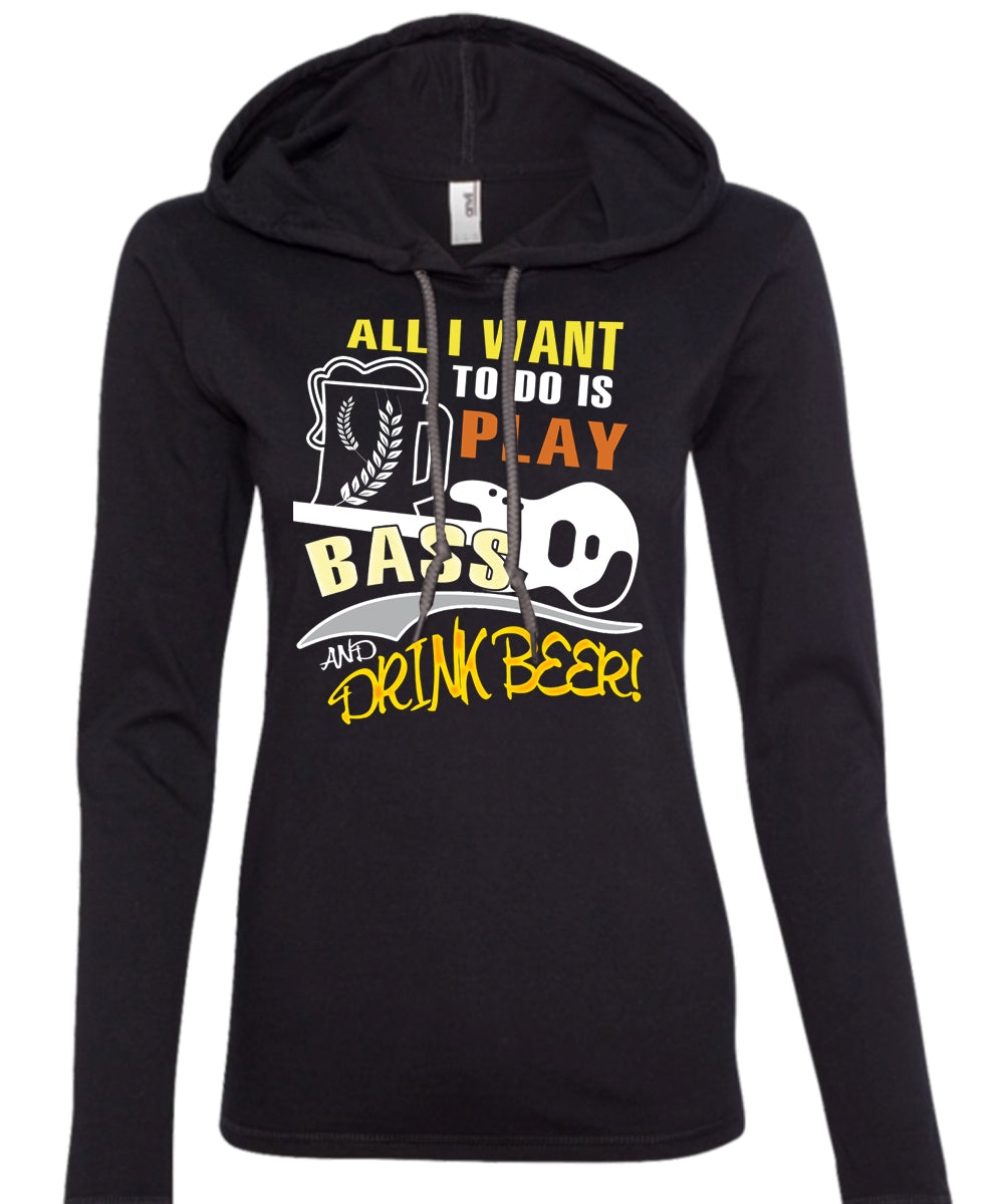 All I Want To Do Is Play Bass And Drink Beer T Shirt, Music T Shirt (Anvil Ladies Ringspun Hooded)