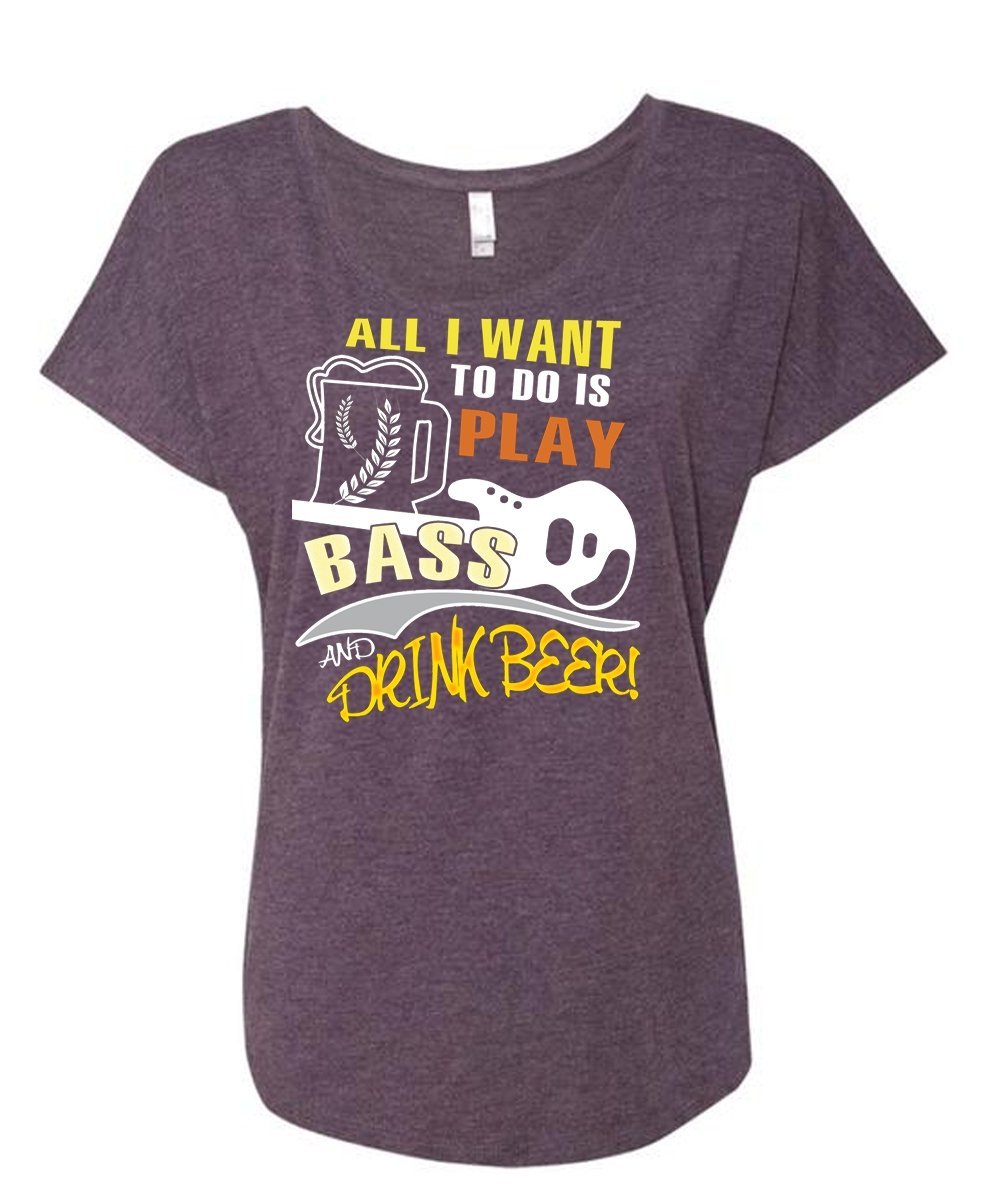 All I Want To Do Is Play Bass And Drink Beer T Shirt, Music T Shirt (Ladies' Triblend Dolman Sleeve)