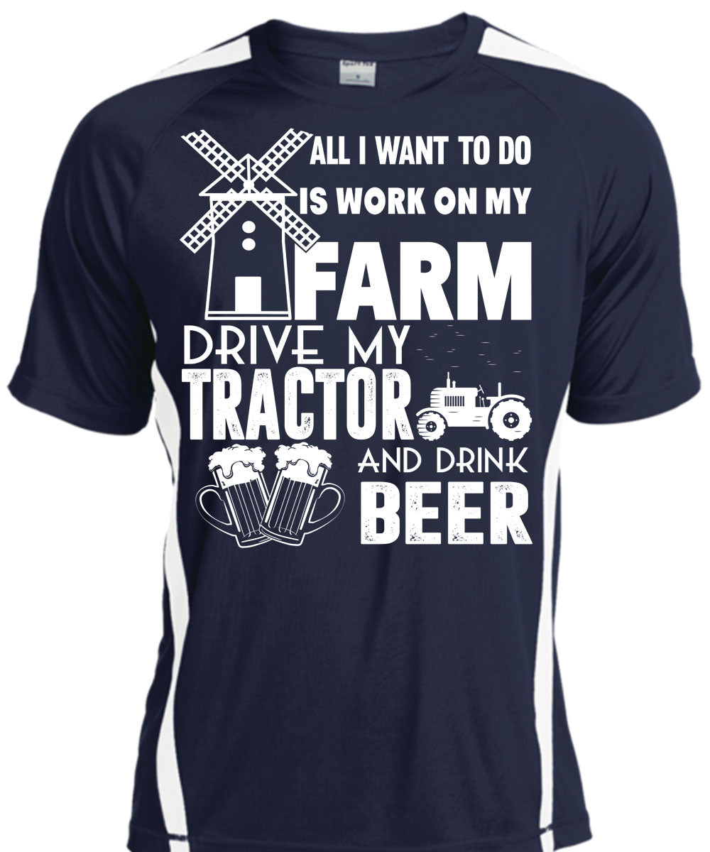 All I Want To Do Is Work On My Farm T Shirt, Drive My Tractor And Drink Beer T Shirt, Cool Shirt