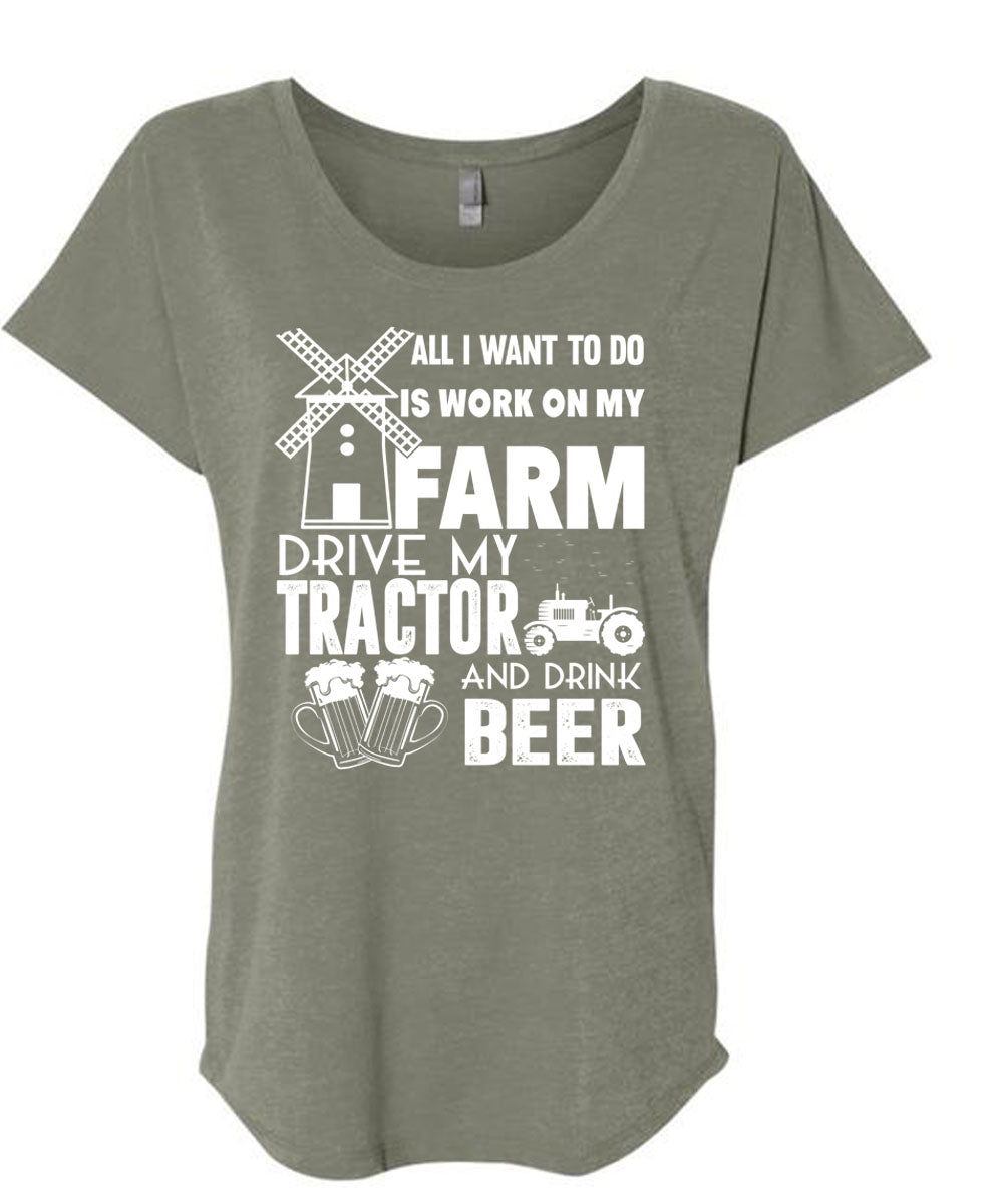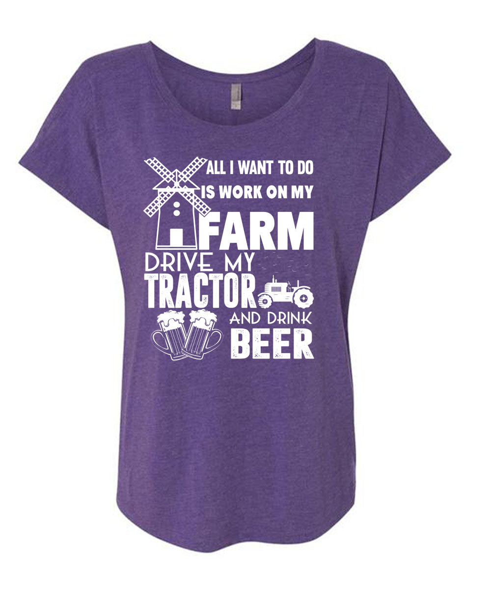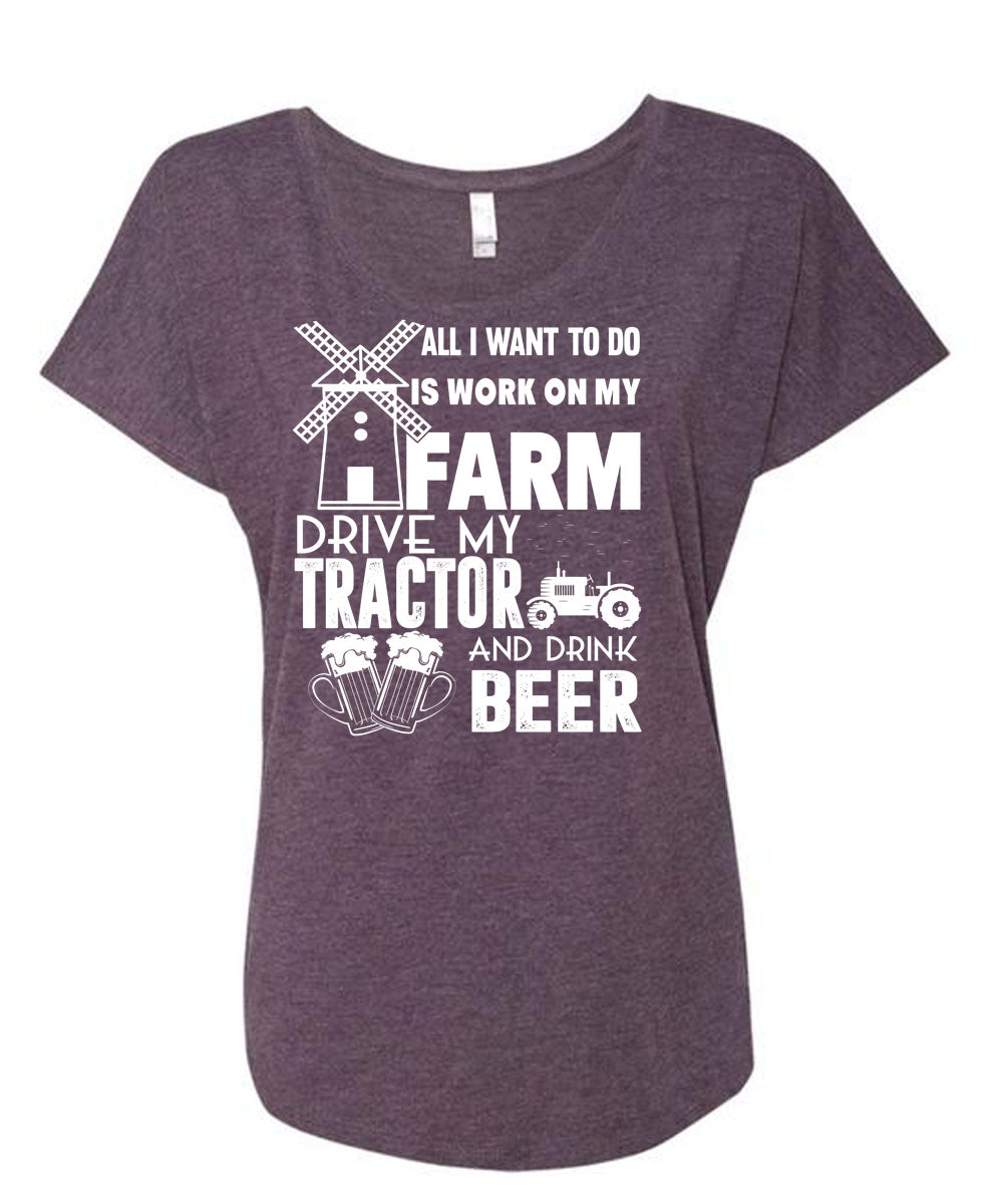 All I Want To Do Is Work On My Farm T Shirt, Drive My Tractor And Drink Beer T Shirt, Cool Shirt (Ladies' Triblend Dolman Sleeve)