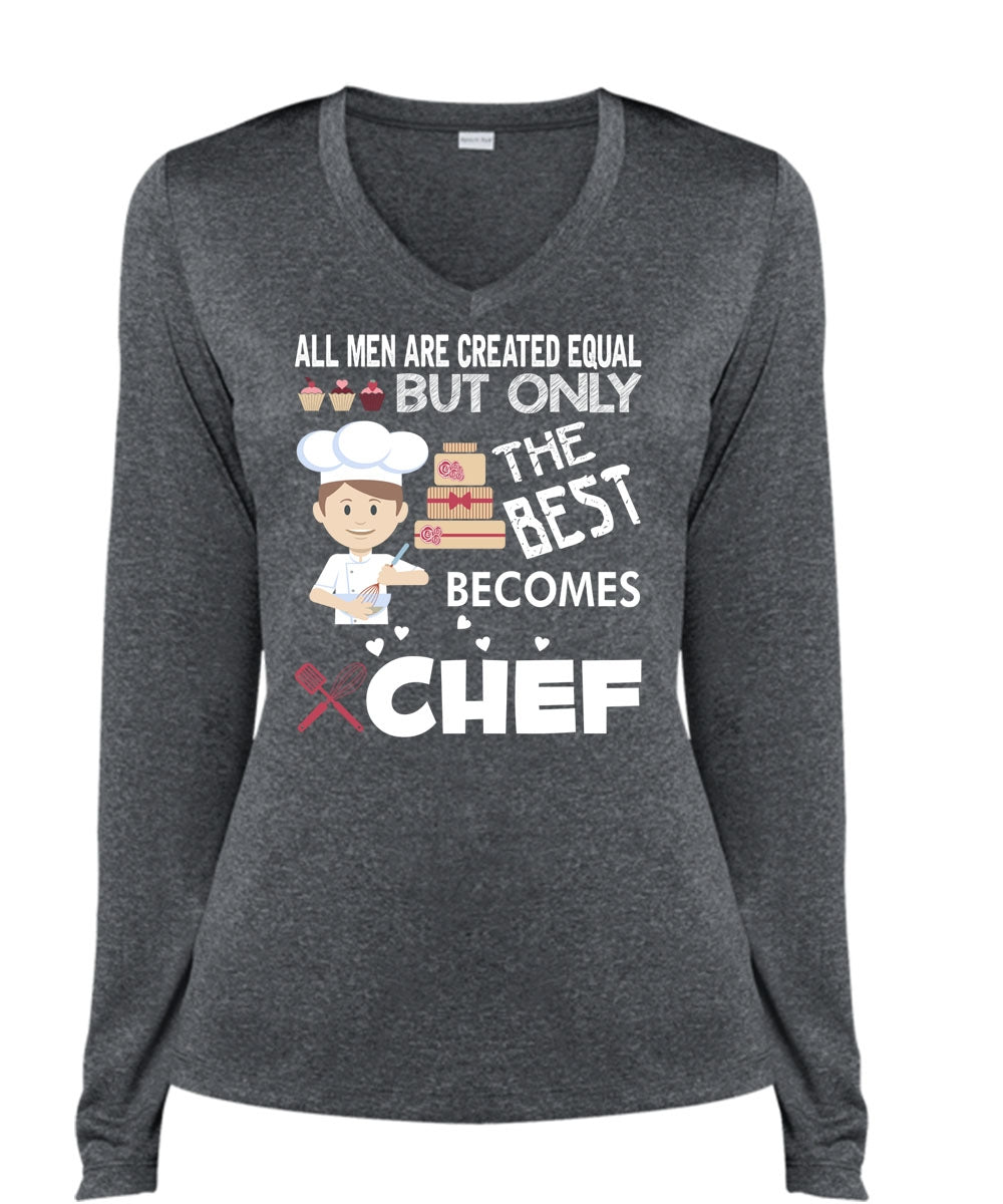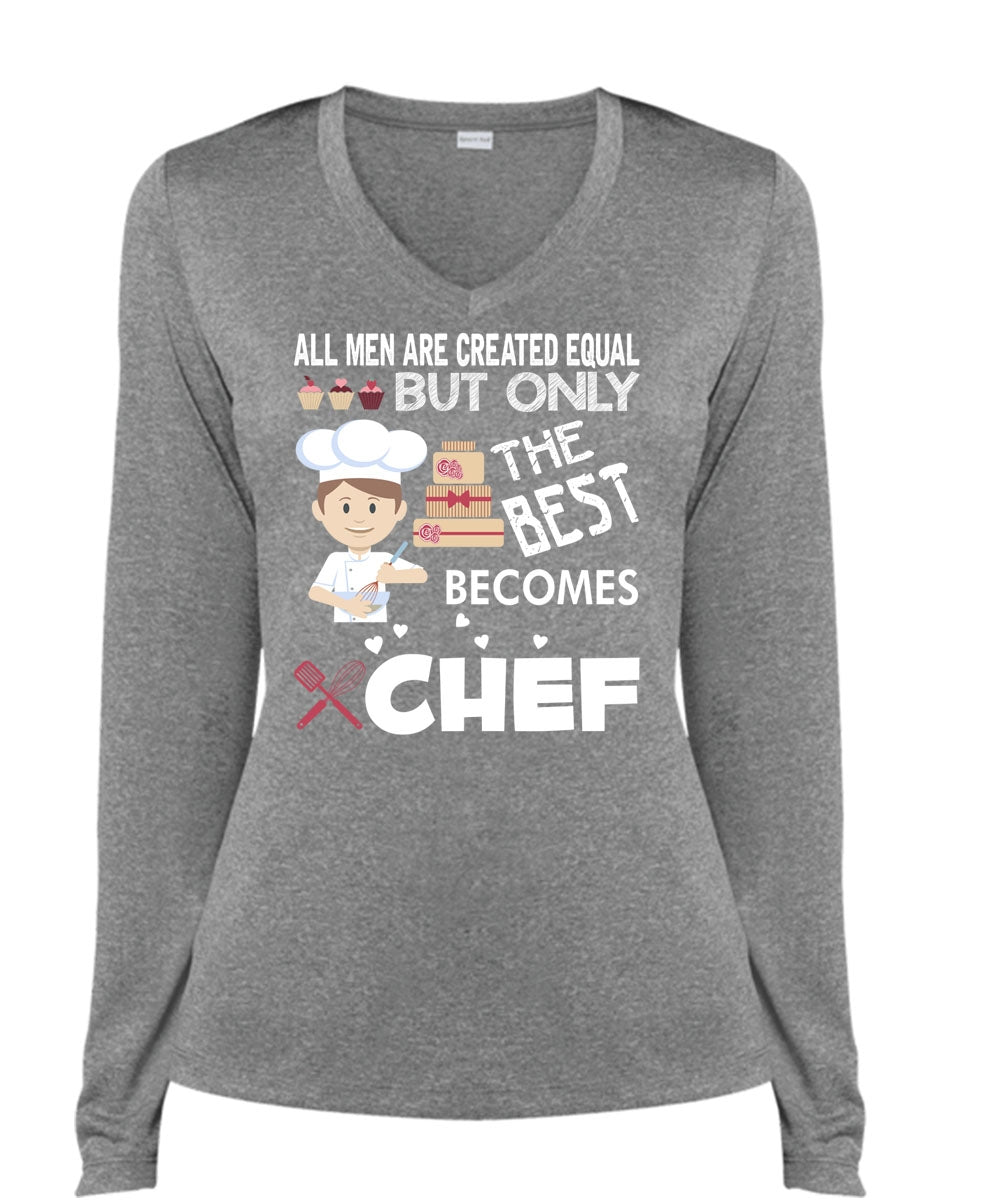All Men Are Created Equal But Only The Best Becomes Chef T Shirt, Job T Shirt (Ladies LS Heather V-Neck)