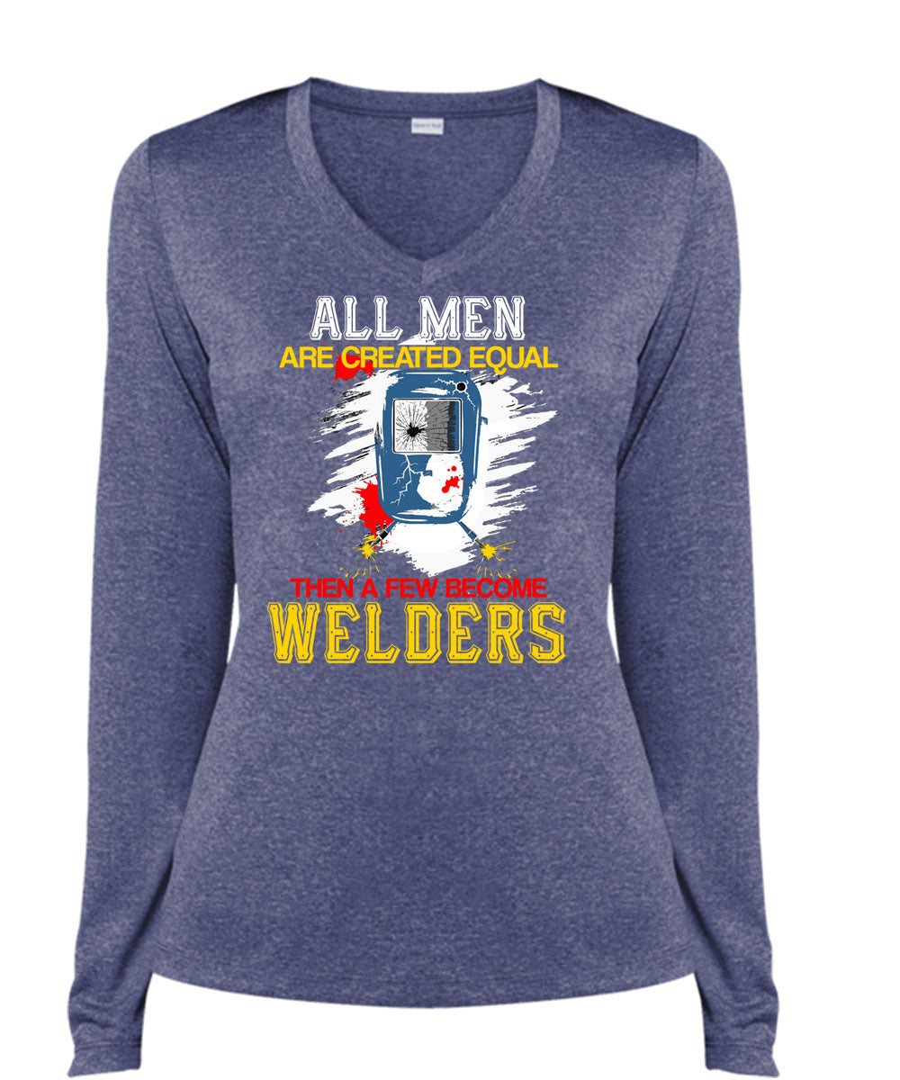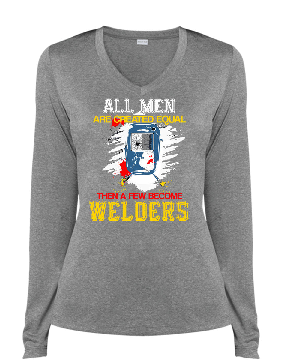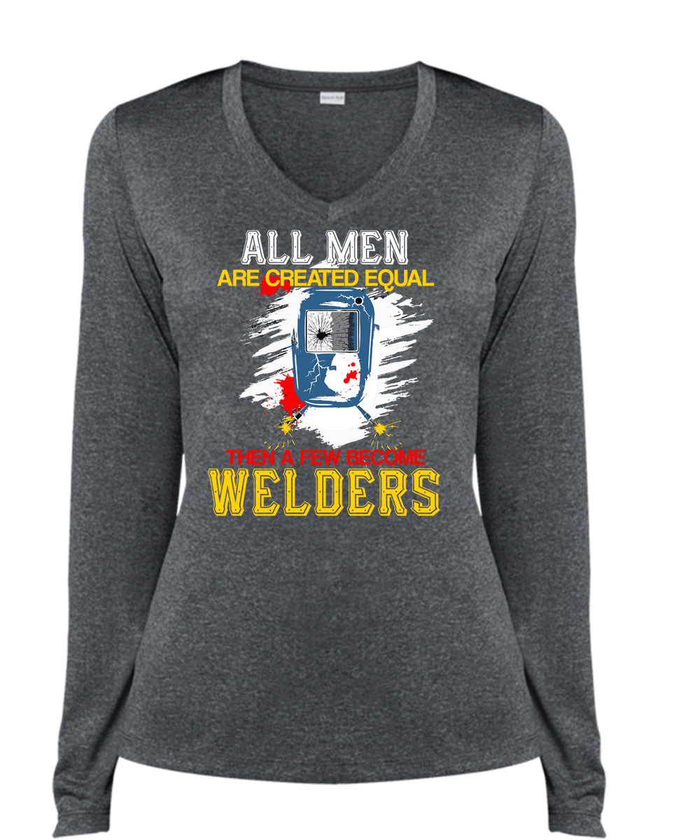 All Men Are Created Equal T Shirt, A Few Become Welders T Shirt, Cool Shirt (Ladies LS Heather V-Neck)