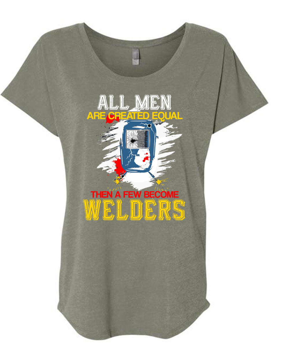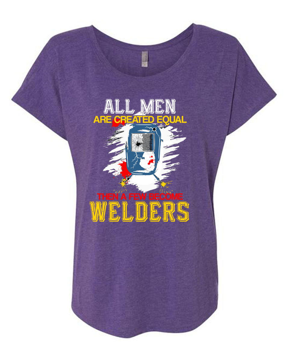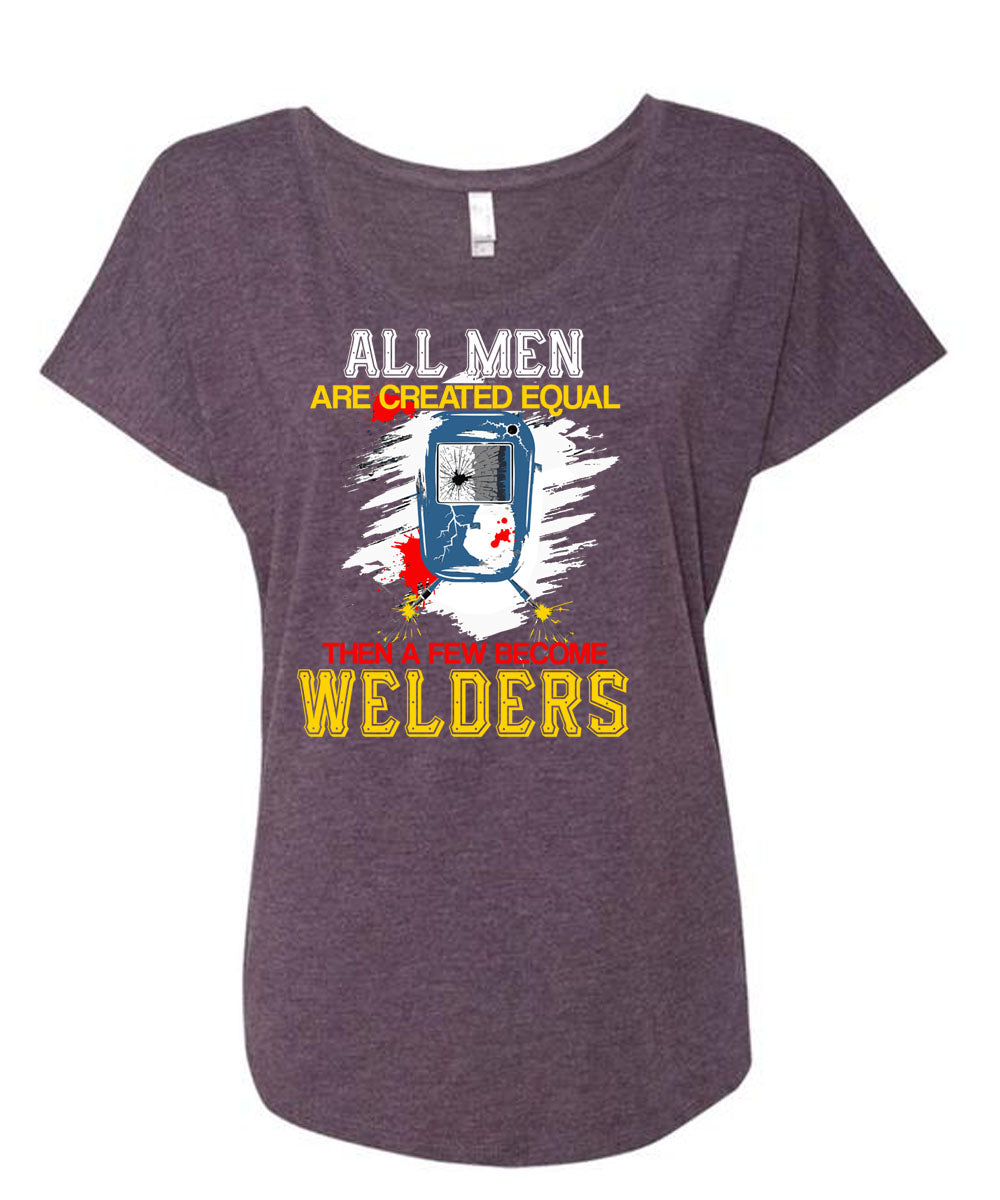 All Men Are Created Equal T Shirt, A Few Become Welders T Shirt, Cool Shirt (Ladies' Triblend Dolman Sleeve)