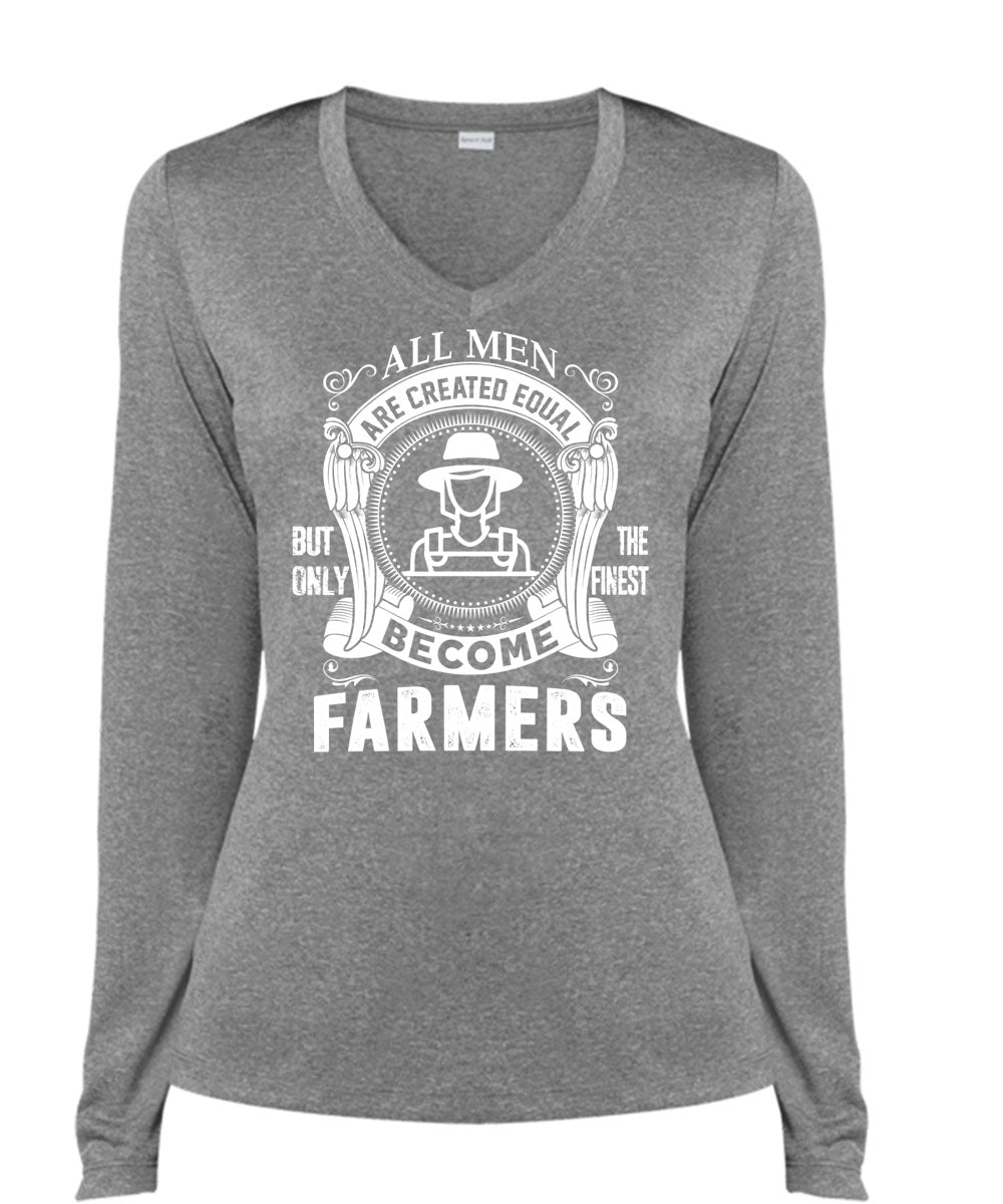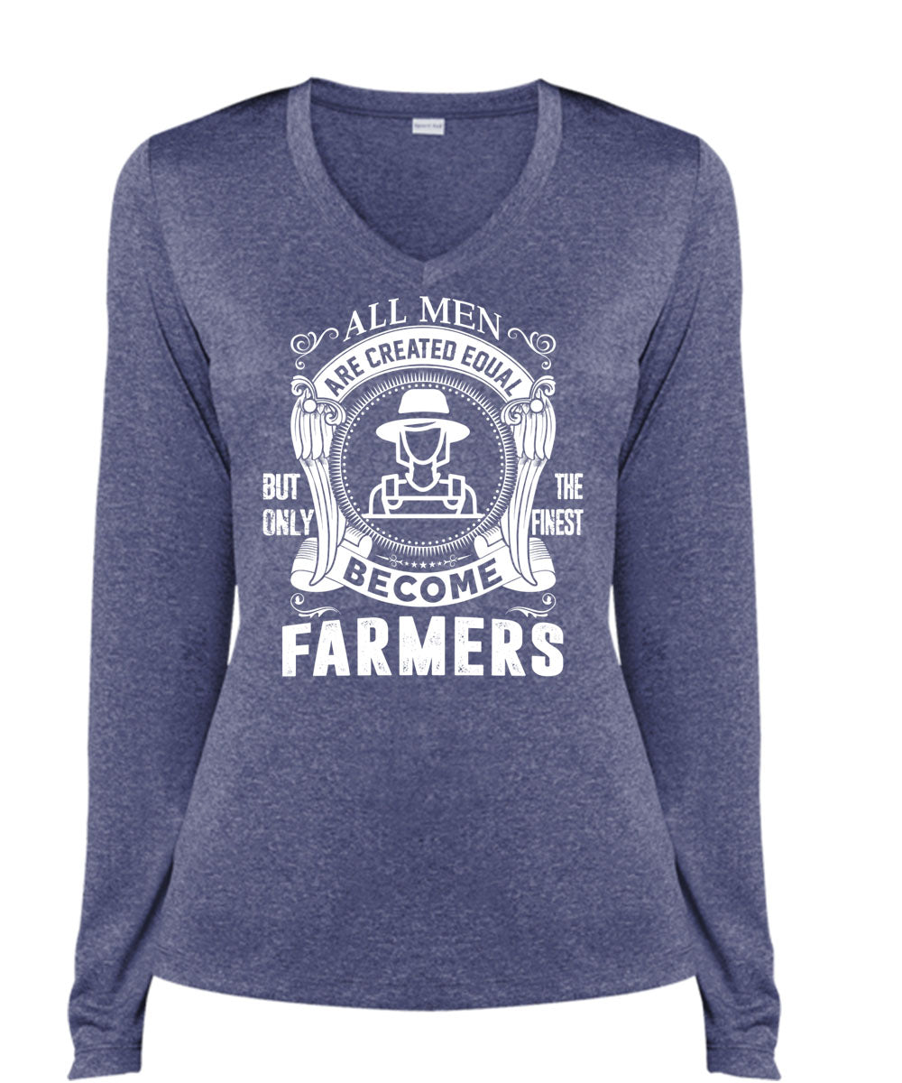 All Men Are Created Equal T Shirt, Only The Finest Become Farmers T Shirt, Cool Shirt (Ladies LS Heather V-Neck)