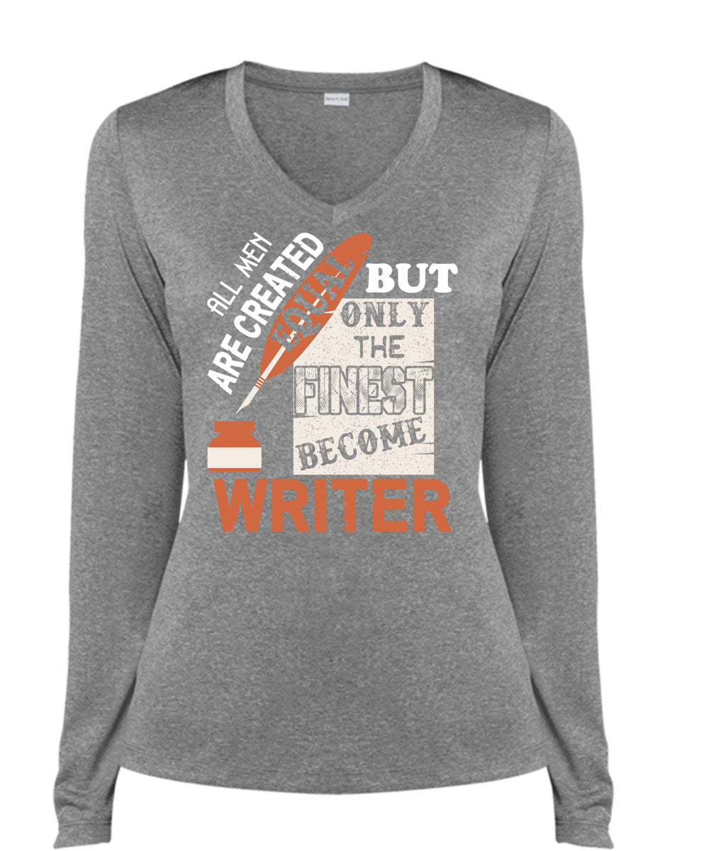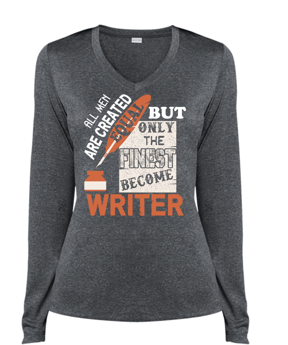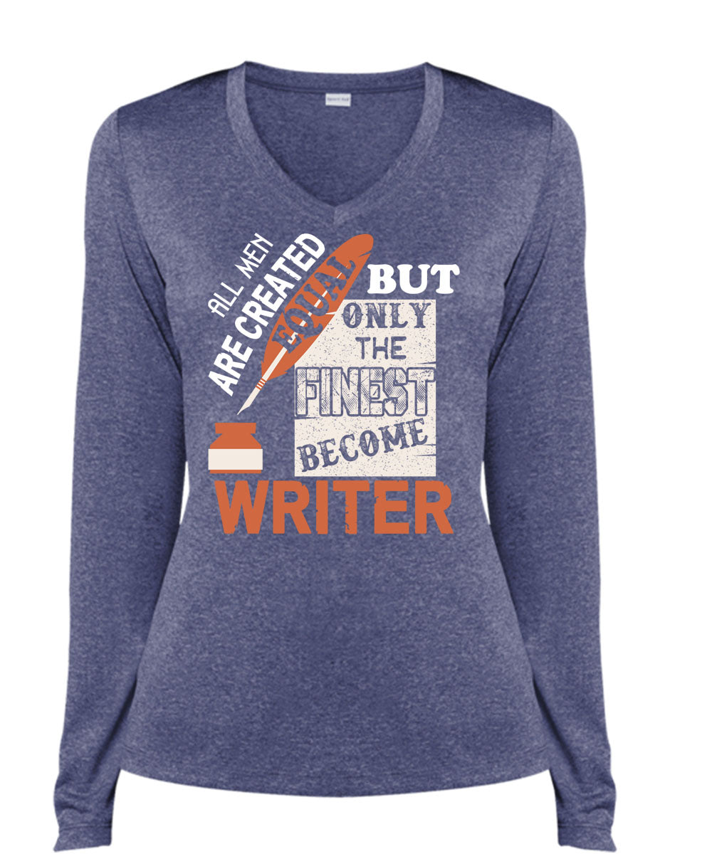 All Men Are Created Equal T Shirt, Only The Finest Become Writer T Shirt, Cool Shirt (Ladies LS Heather V-Neck)