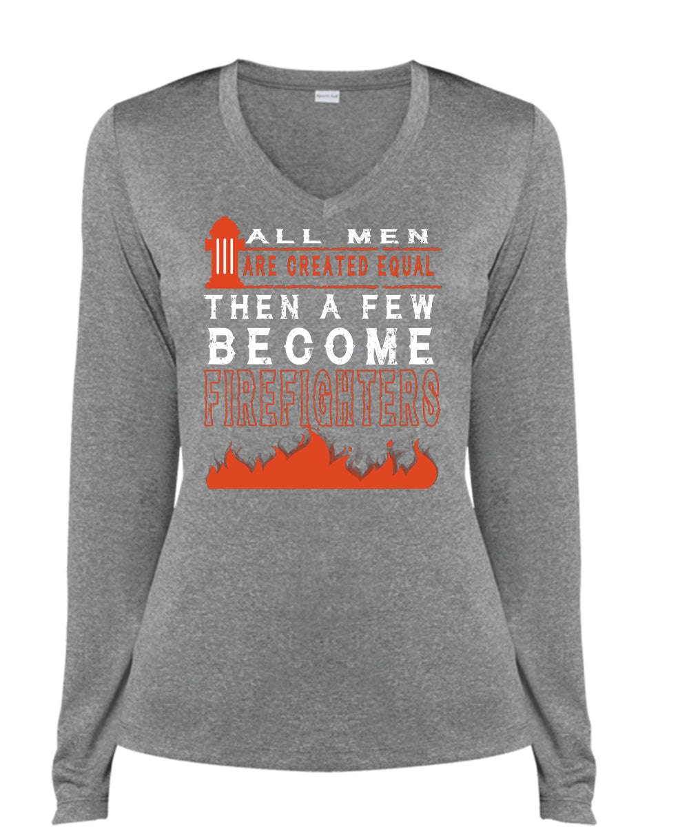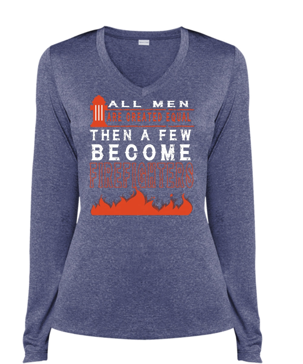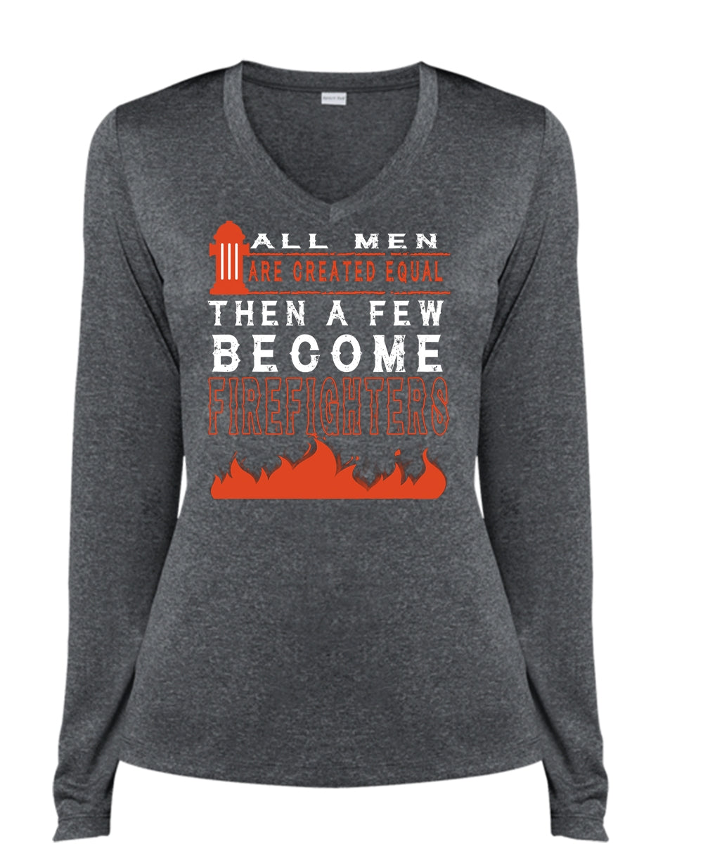 All Men Are Created Equal Then A Few Become Firefighters T Shirt, My Job T Shirt (Ladies LS Heather V-Neck)