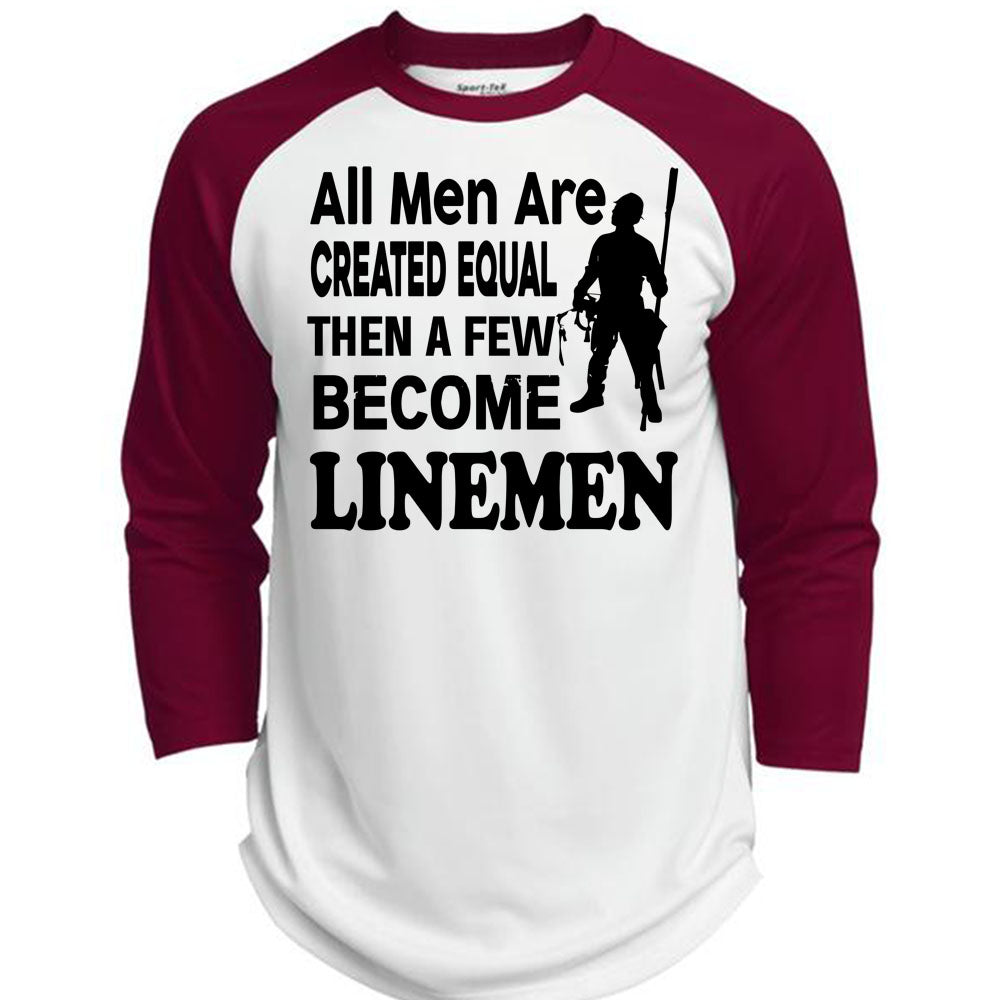 All Men Are Created Equal Then A Few Become Linemen T Shirt, Being A Linemen T Shirt, Awesome T-Shirts (Polyester Game Baseball Jersey)