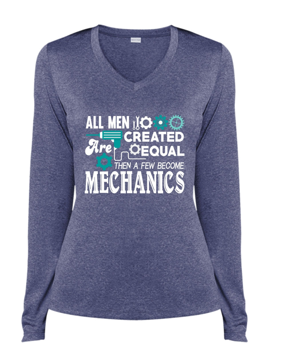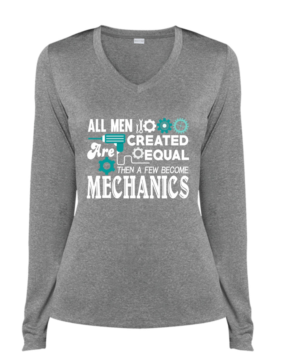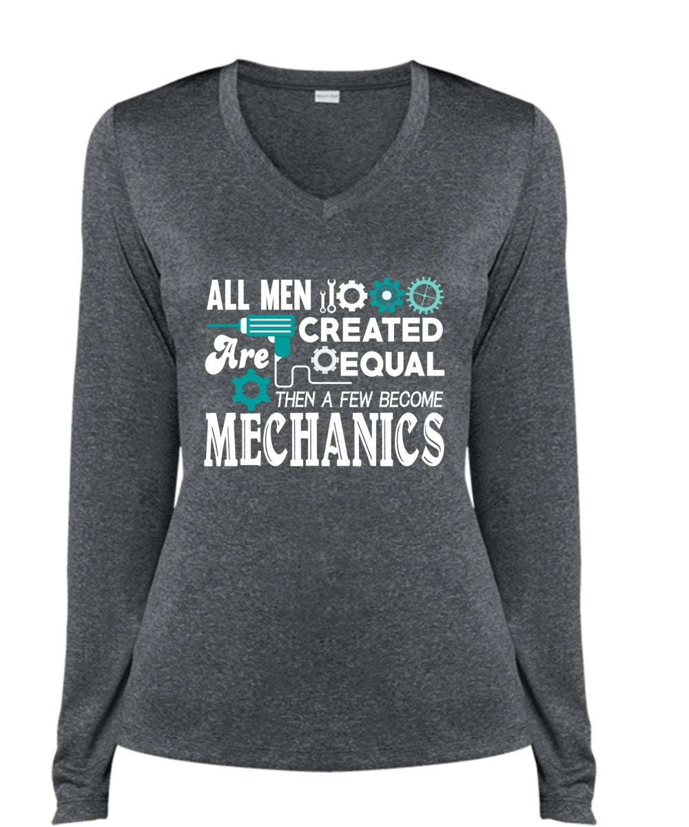 All Men Are Created Equal Then A Few Become Mechanics T Shirt, Life T Shirt (Ladies LS Heather V-Neck)
