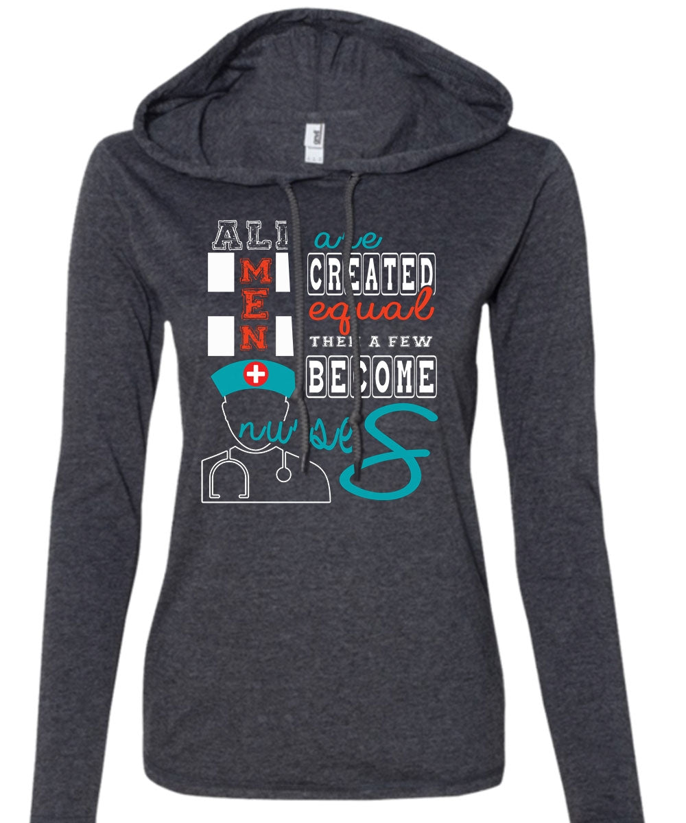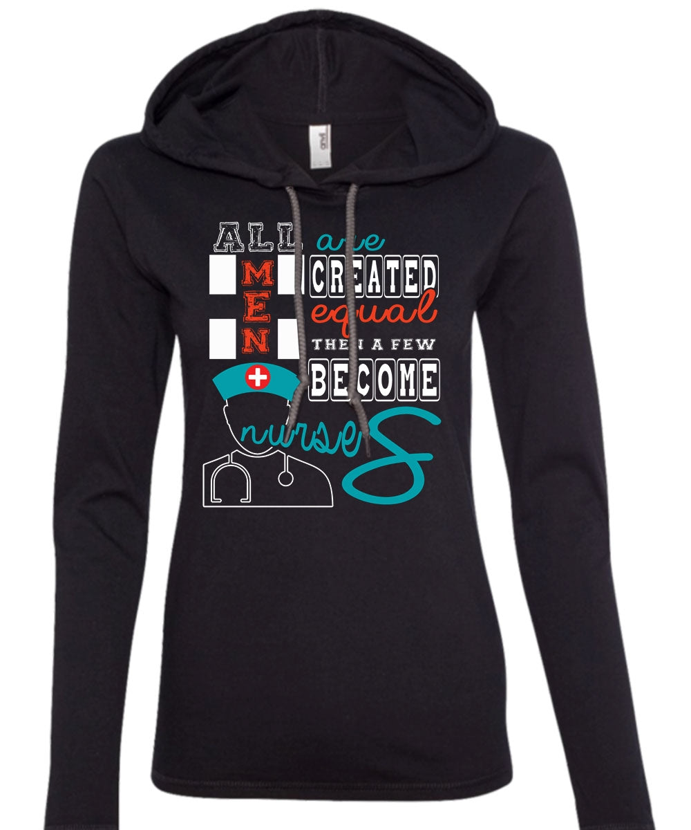 All Men Are Created Equal Then A Few Become Nurse T Shirt, Job T Shirt (Anvil Ladies Ringspun Hooded)