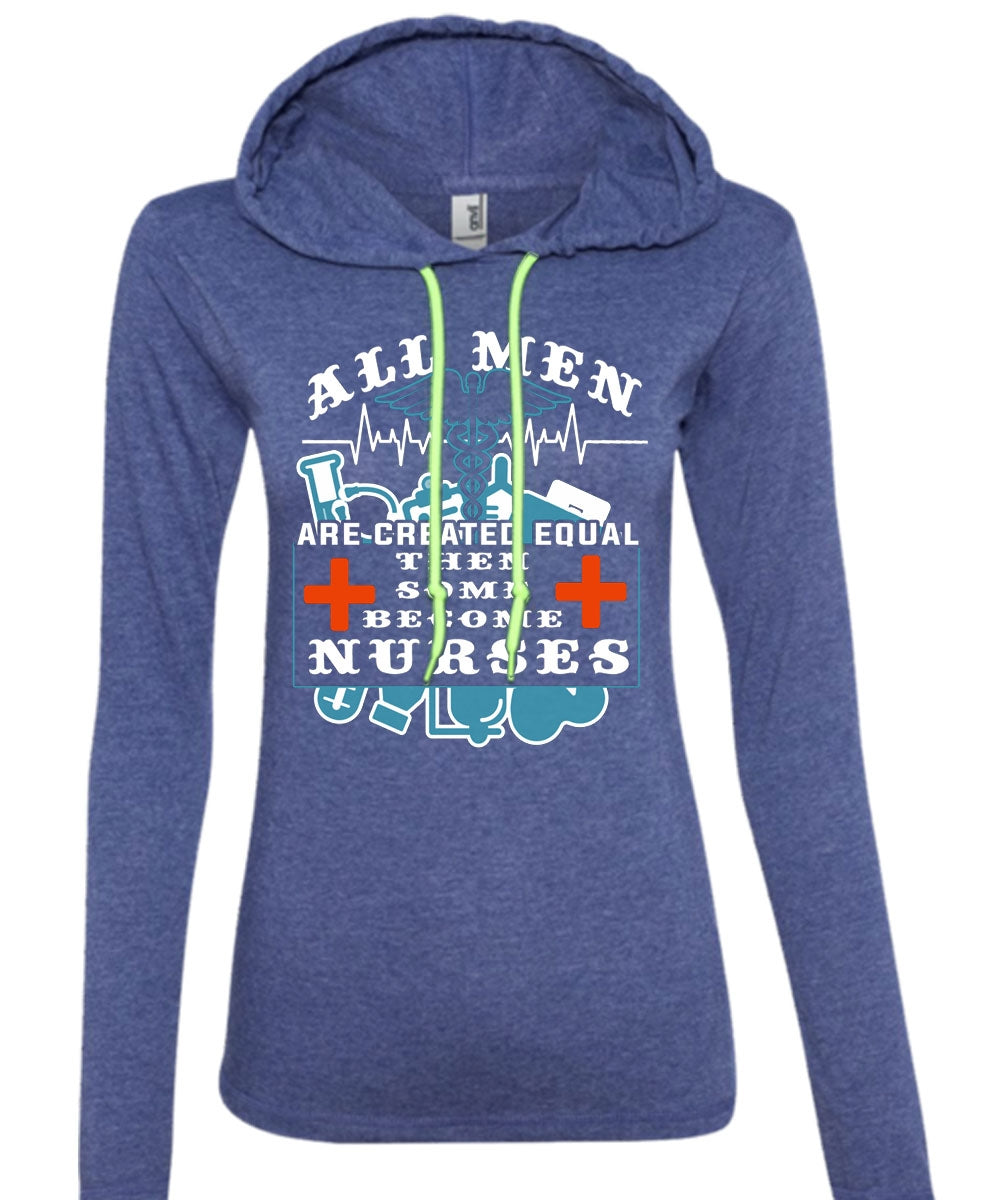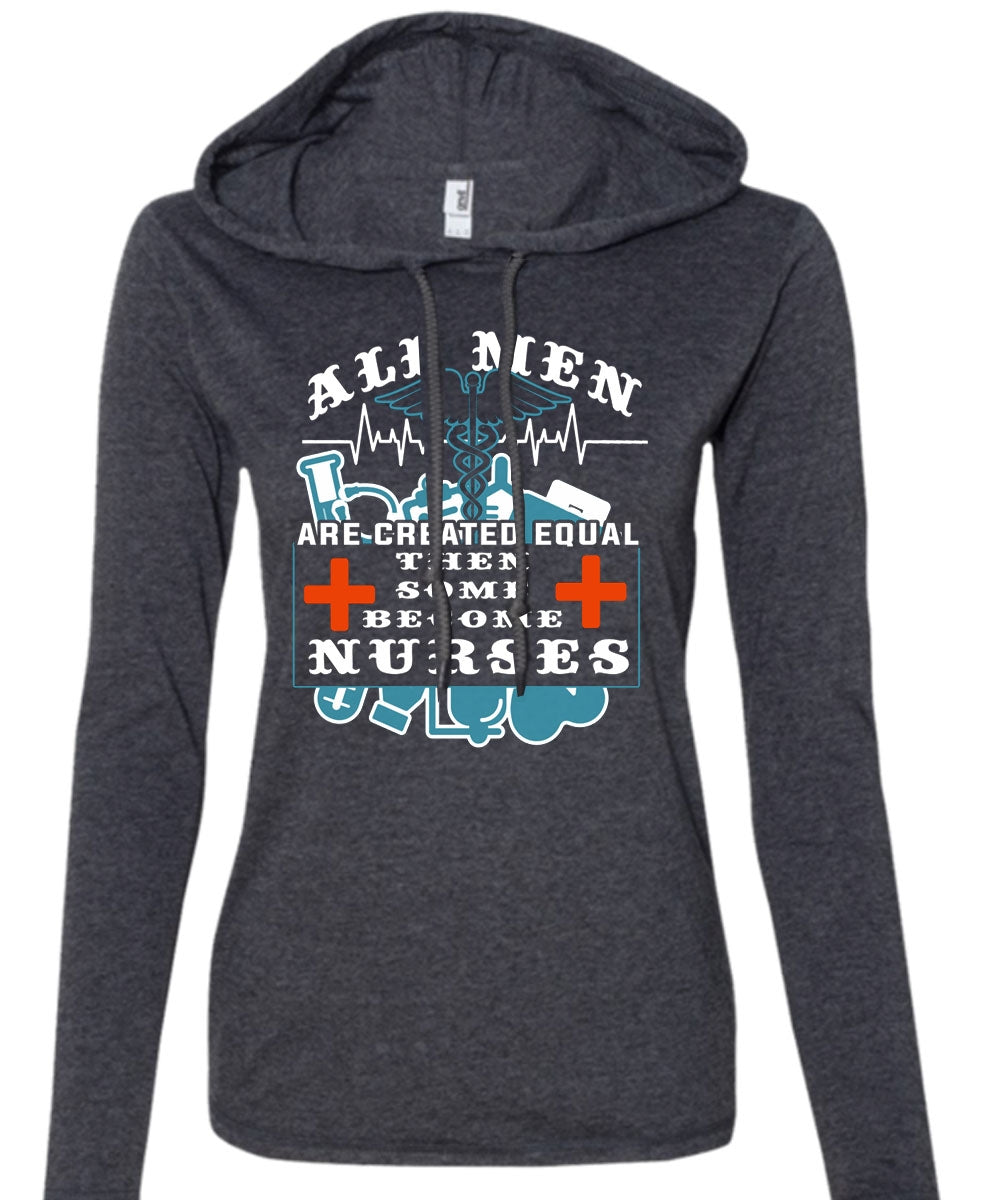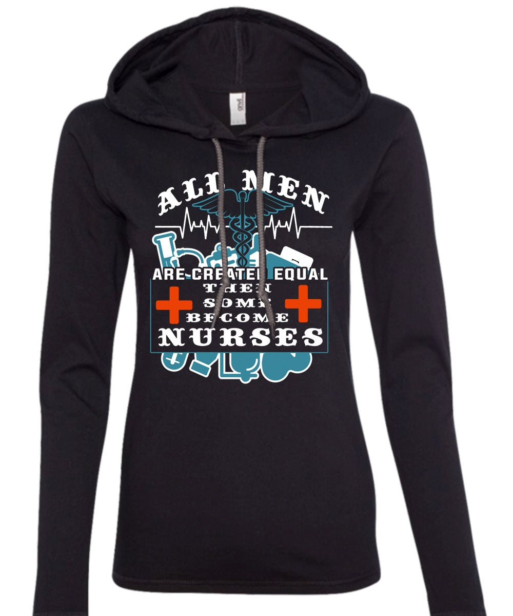 All Men Are Created Equal Then Some Become Nurses T Shirt, Job T Shirt (Anvil Ladies Ringspun Hooded)