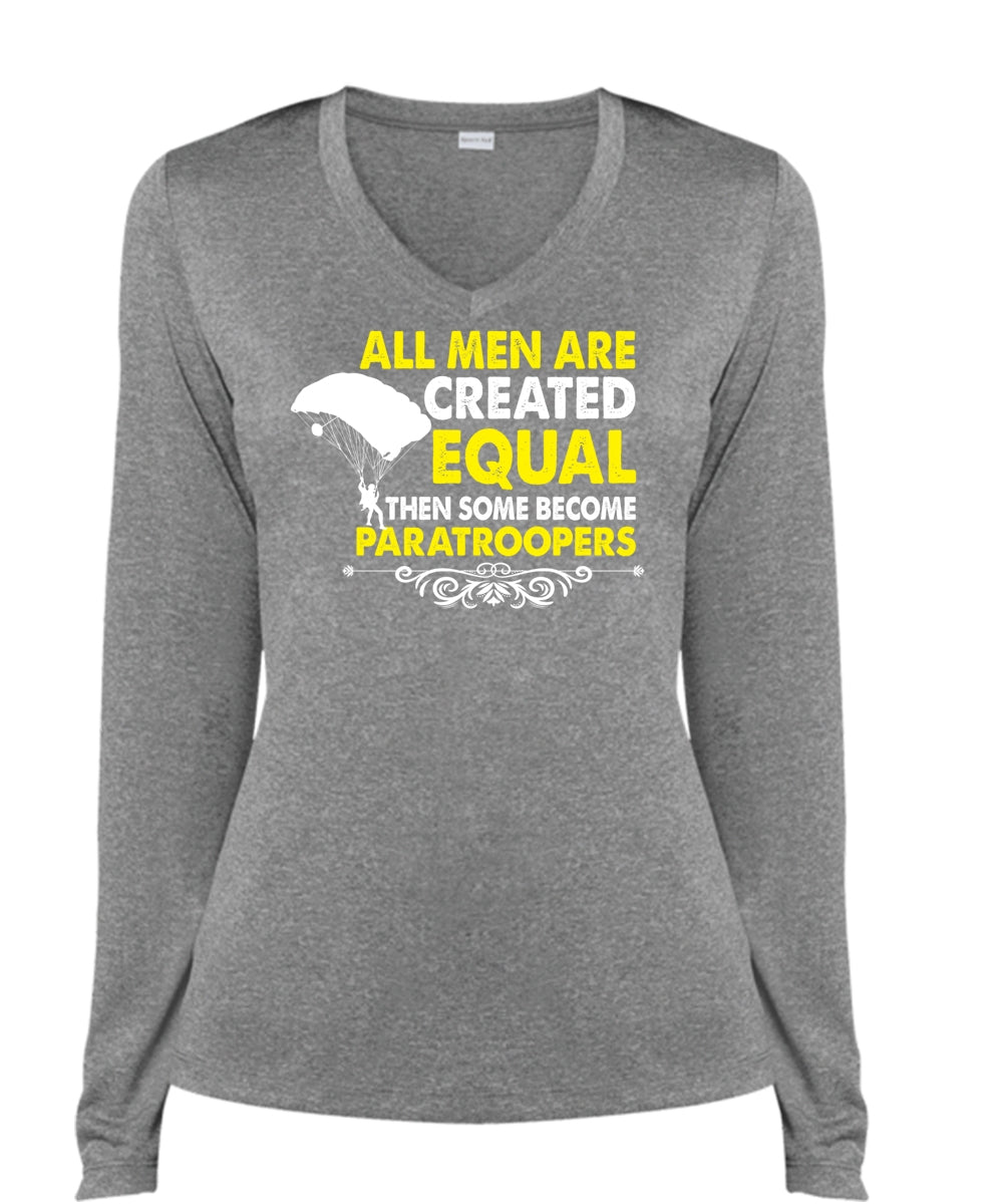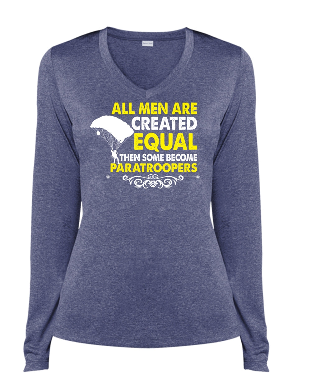 All Men Are Created Equal Then Some Become Paratroopers T Shirt, My Favorite T Shirt (Ladies LS Heather V-Neck)