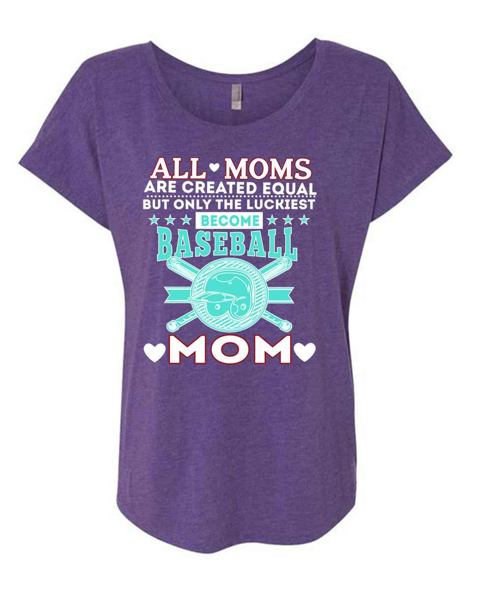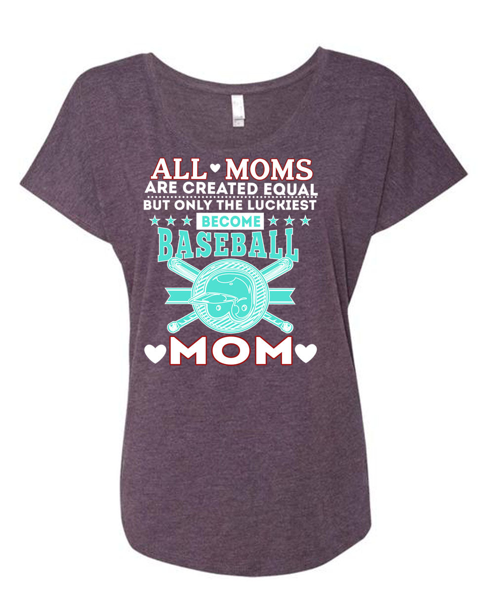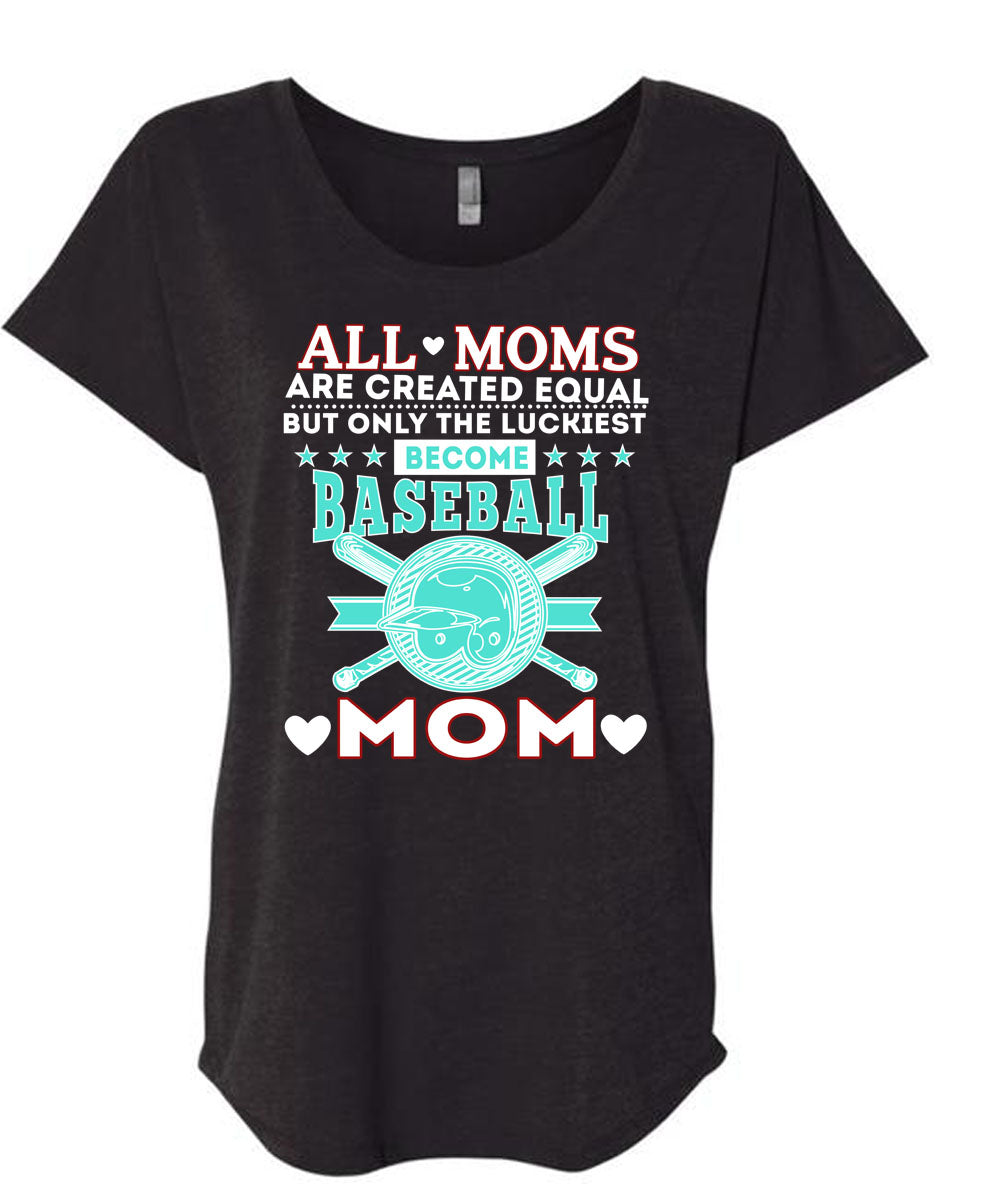 All Moms Are Created Equal T Shirt, Luckiest Become Baseball Mom T Shirt, Cool Shirt (Ladies' Triblend Dolman Sleeve)