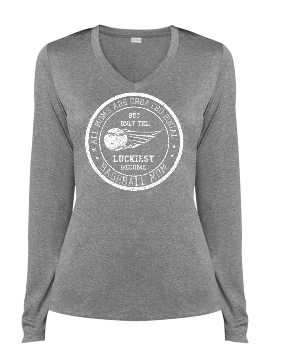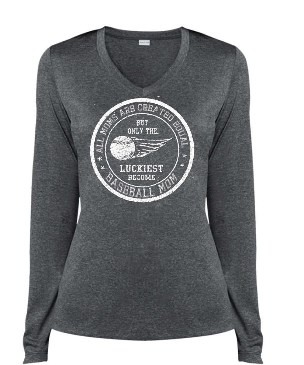 All Moms Are Created Equal T Shirt, The Luckiest Become Baseball Mom T Shirt, Cool Shirt (Ladies LS Heather V-Neck)