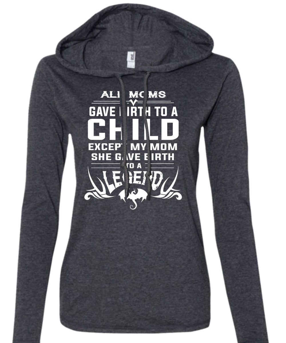 All Moms Gave Birth To A Child Except My Mom T Shirt, She Gave Birth To A Legend T Shirt (Anvil Ladies Ringspun Hooded)