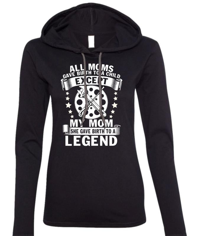 All Moms Gave Birth To A Child T Shirt, She Gave Birth To A Legend T Shirt (Anvil Ladies Ringspun Hooded)