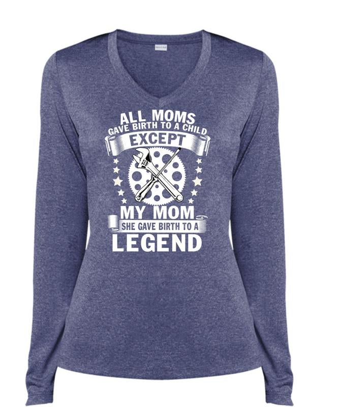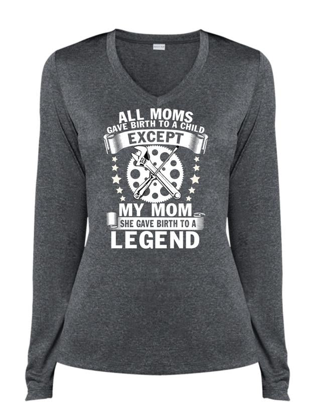 All Moms Gave Birth To A Child T Shirt, She Gave Birth To A Legend T Shirt, Cool Shirt (Ladies LS Heather V-Neck)