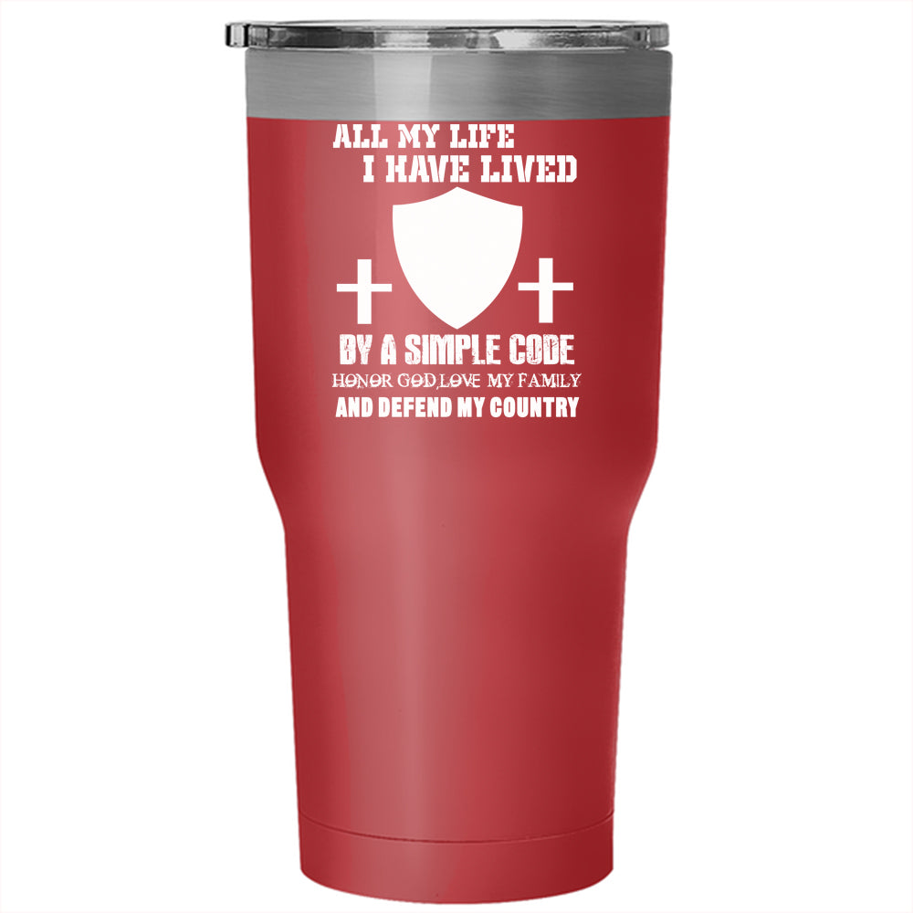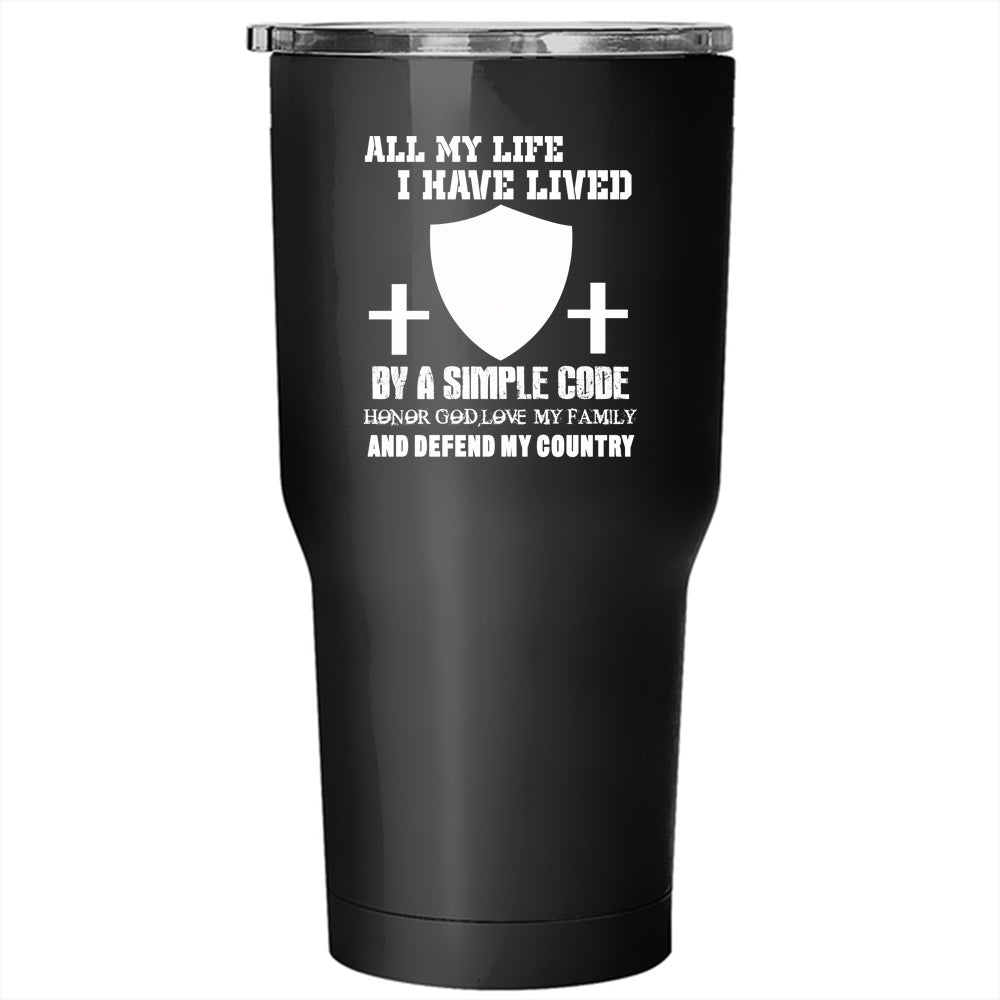 All My Life I Have Lived By A Simple Code Tumbler 30 oz Stainless Steel, Veteran Travel Mug