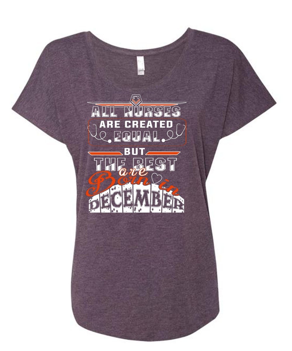 All Nurses Are Created Equal But The Best Are Born In December T Shirt, Job T Shirt (Ladies' Triblend Dolman Sleeve)