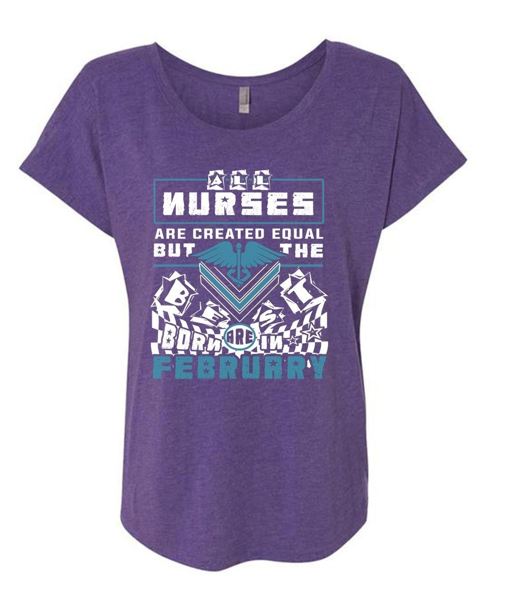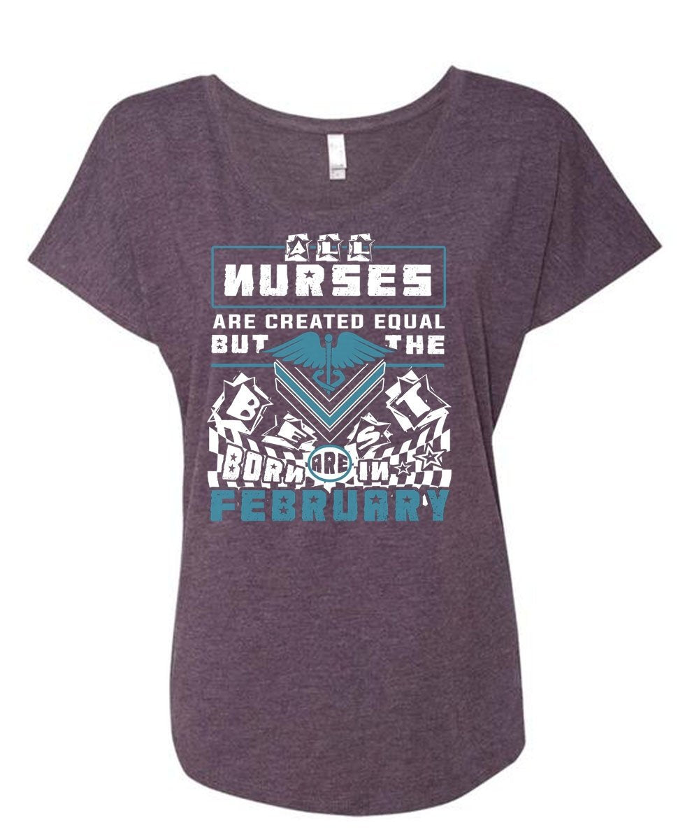 All Nurses Are Created Equal But The Best Are Born In February T Shirt, Job T Shirt (Ladies' Triblend Dolman Sleeve)