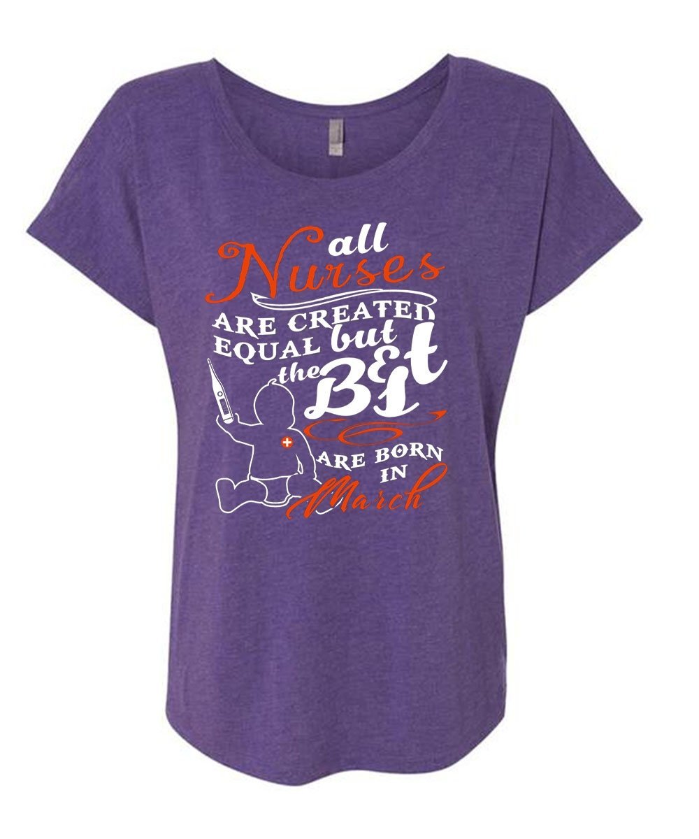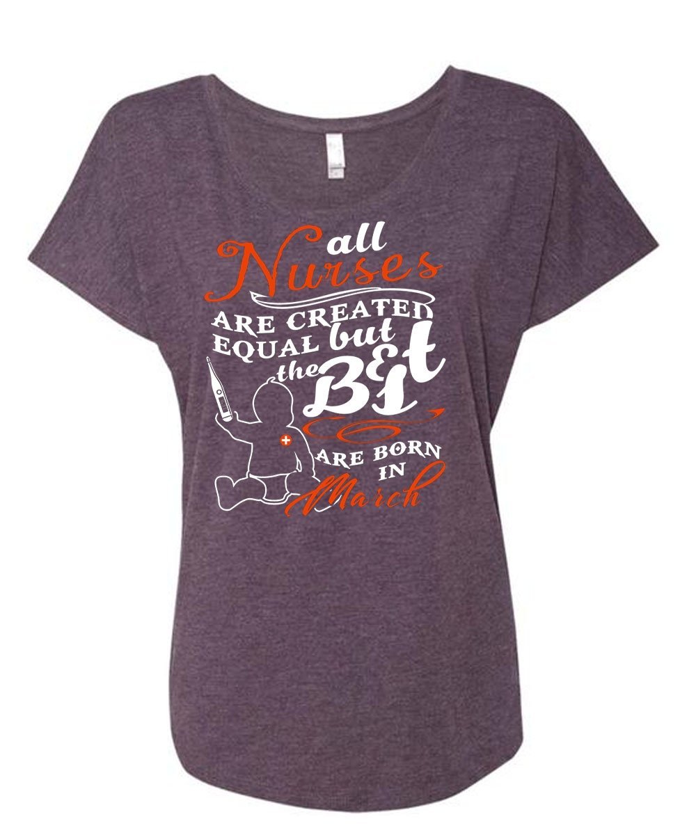 All Nurses Are Created Equal But The Best Are Born In March T Shirt, Job T Shirt (Ladies' Triblend Dolman Sleeve)