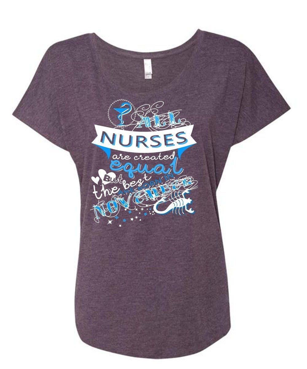 All Nurses Are Created Equal But The Best Are Born In November T Shirt, Job T Shirt (Ladies' Triblend Dolman Sleeve)