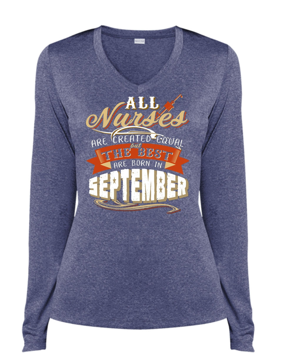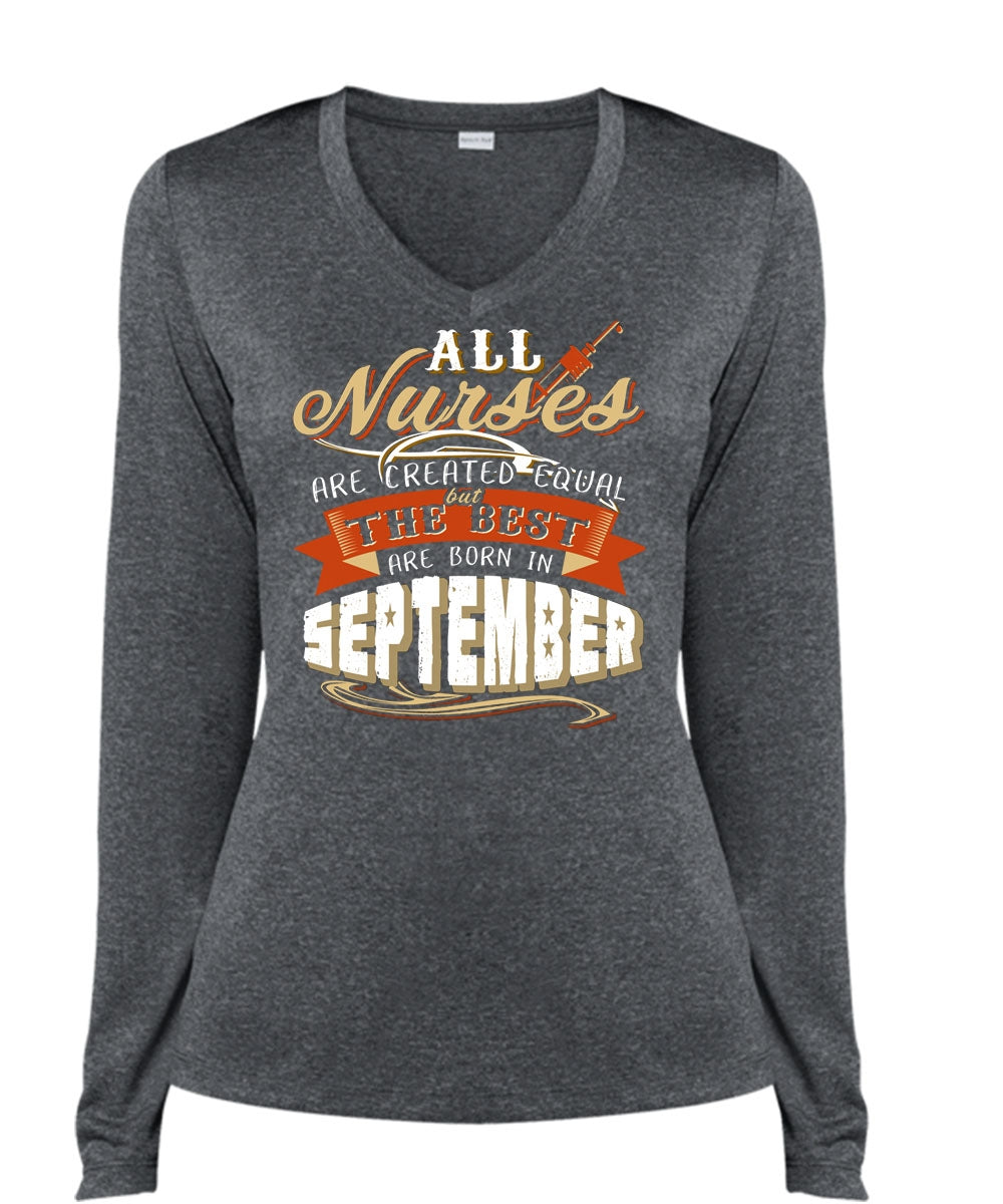 All Nurses Are Created Equal But The Best Are Born In September T Shirt, Job T Shirt (Ladies LS Heather V-Neck)
