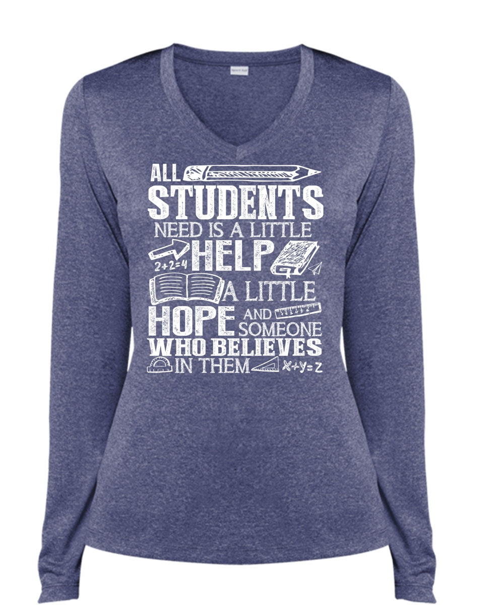All Students Need Is A Little Help T Shirt, Being A Teacher T Shirt, Cool Shirt (Ladies LS Heather V-Neck)
