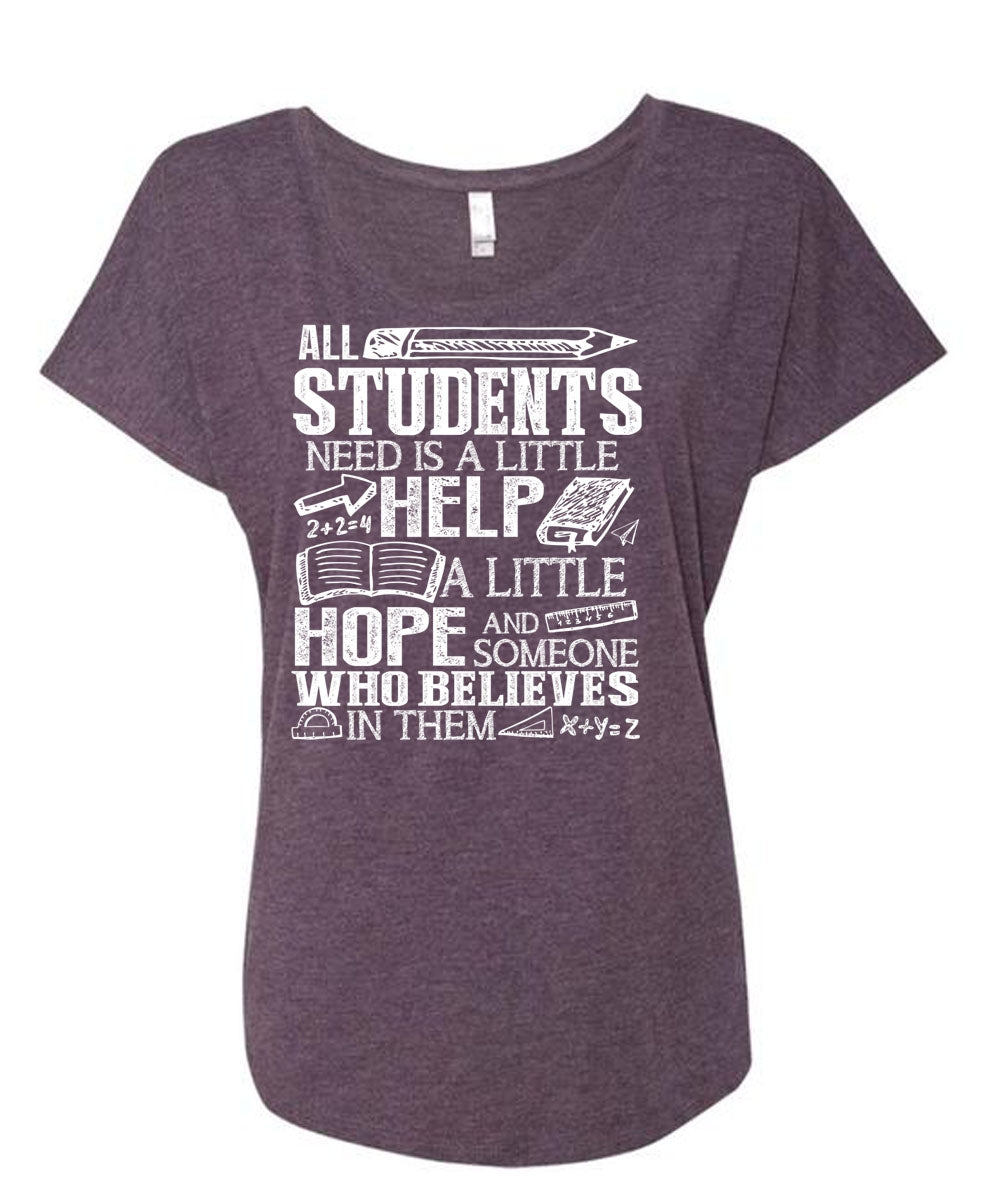 All Students Need Is A Little Help T Shirt, Being A Teacher T Shirt, Cool Shirt (Ladies' Triblend Dolman Sleeve)