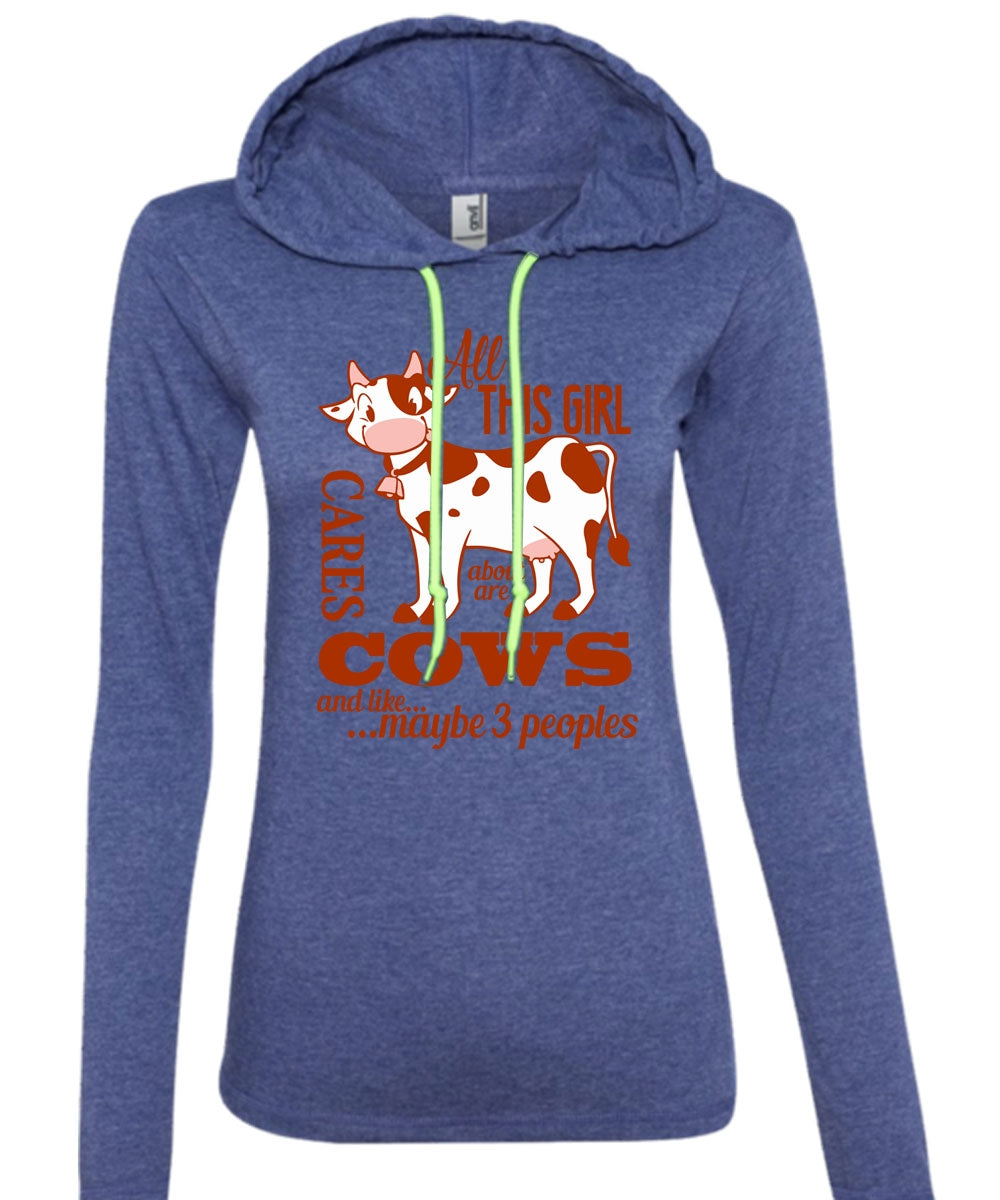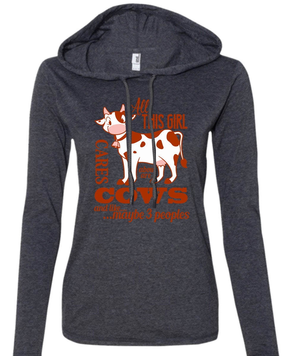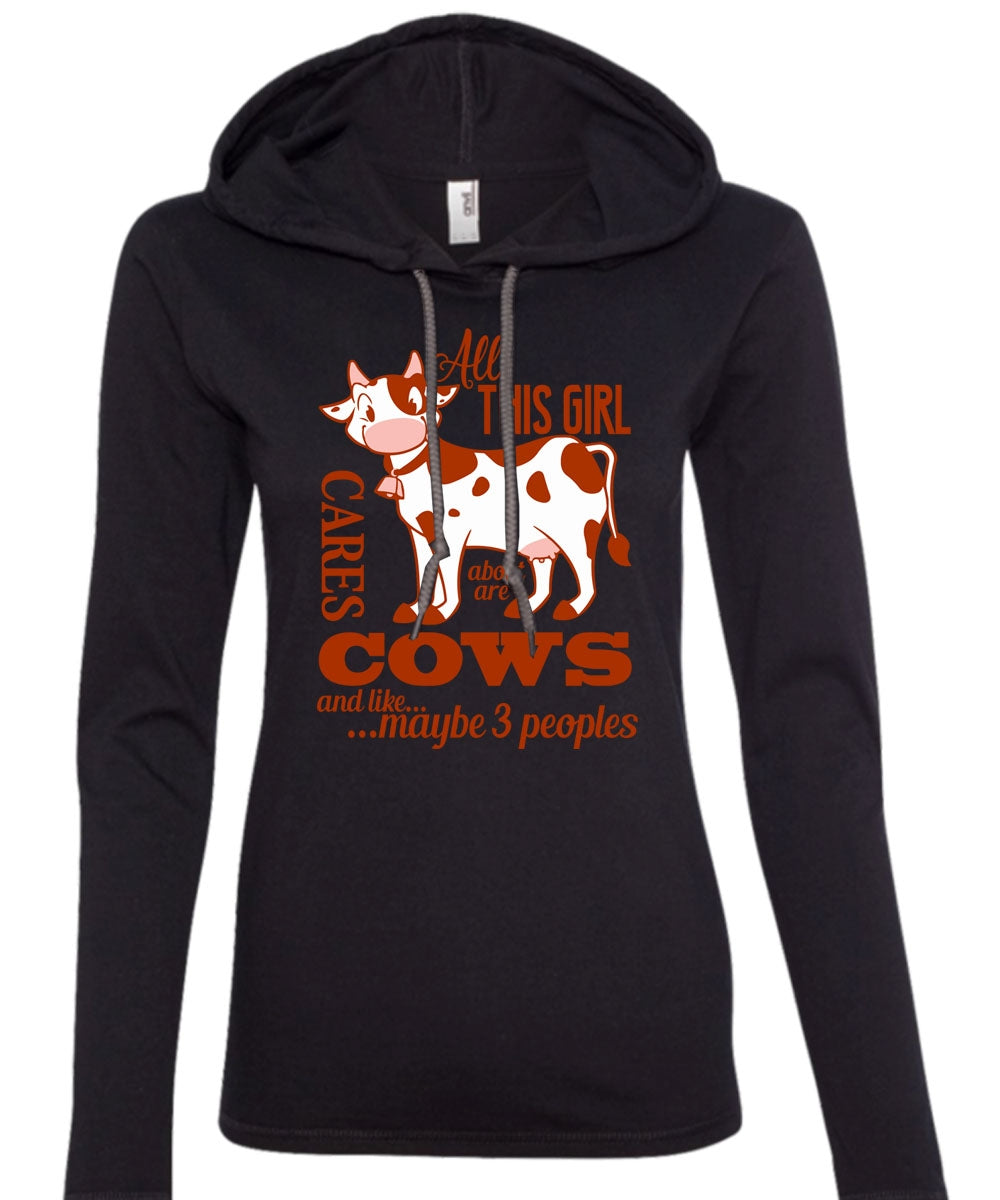 All This Girl Cares About Are Cows T Shirt, Maybe 3 Peoples T Shirt (Anvil Ladies Ringspun Hooded)