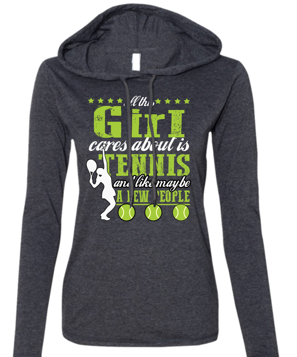 All This Girl Cares About Is Tennis T Shirt, Being A Tennis Coach T Shirt (Anvil Ladies Ringspun Hooded)