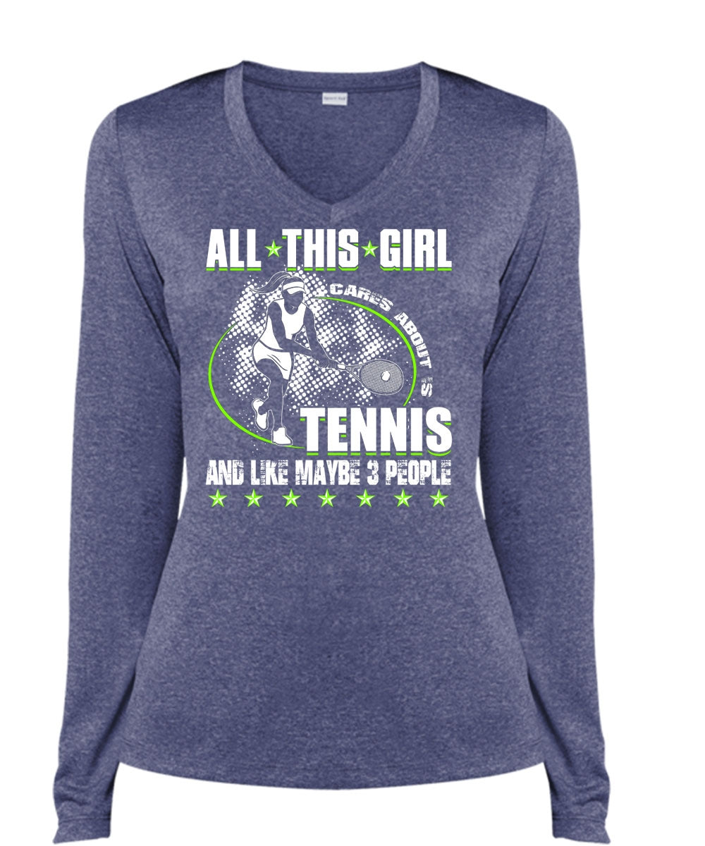 All This Girl Cares About Is Tennis T Shirt, Like Maybe 3 People T Shirt, Cool Shirt (Ladies LS Heather V-Neck)