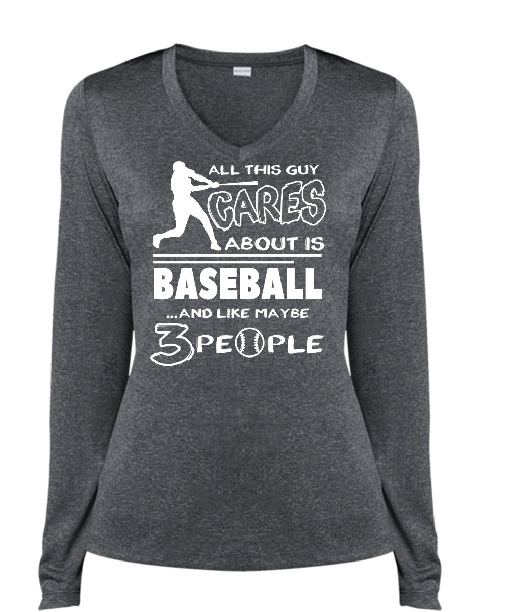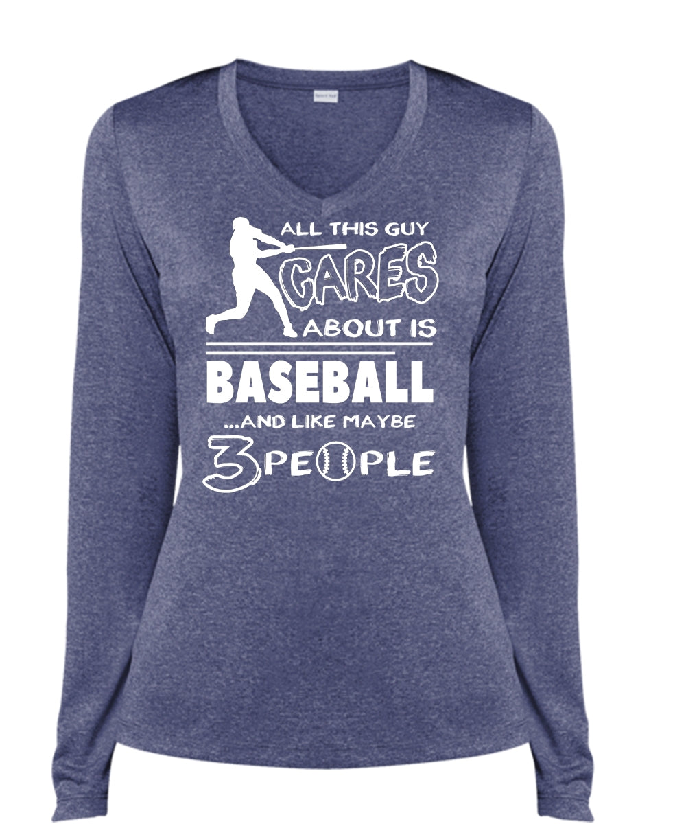 All This Guy Cares About Is Baseball And Like Maybe 3 People T Shirt, Sport T Shirt (Ladies LS Heather V-Neck)