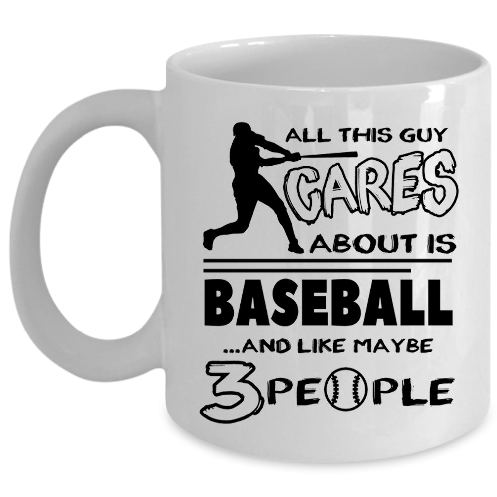 All This Guy Cares About Is Baseball Cup, Baseball Player Mug (Coffee Mug - White)