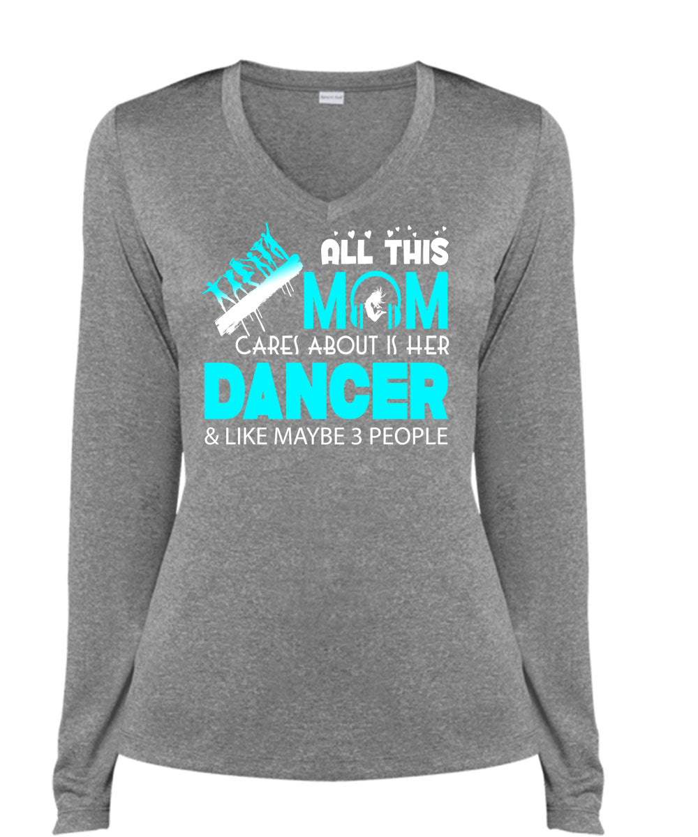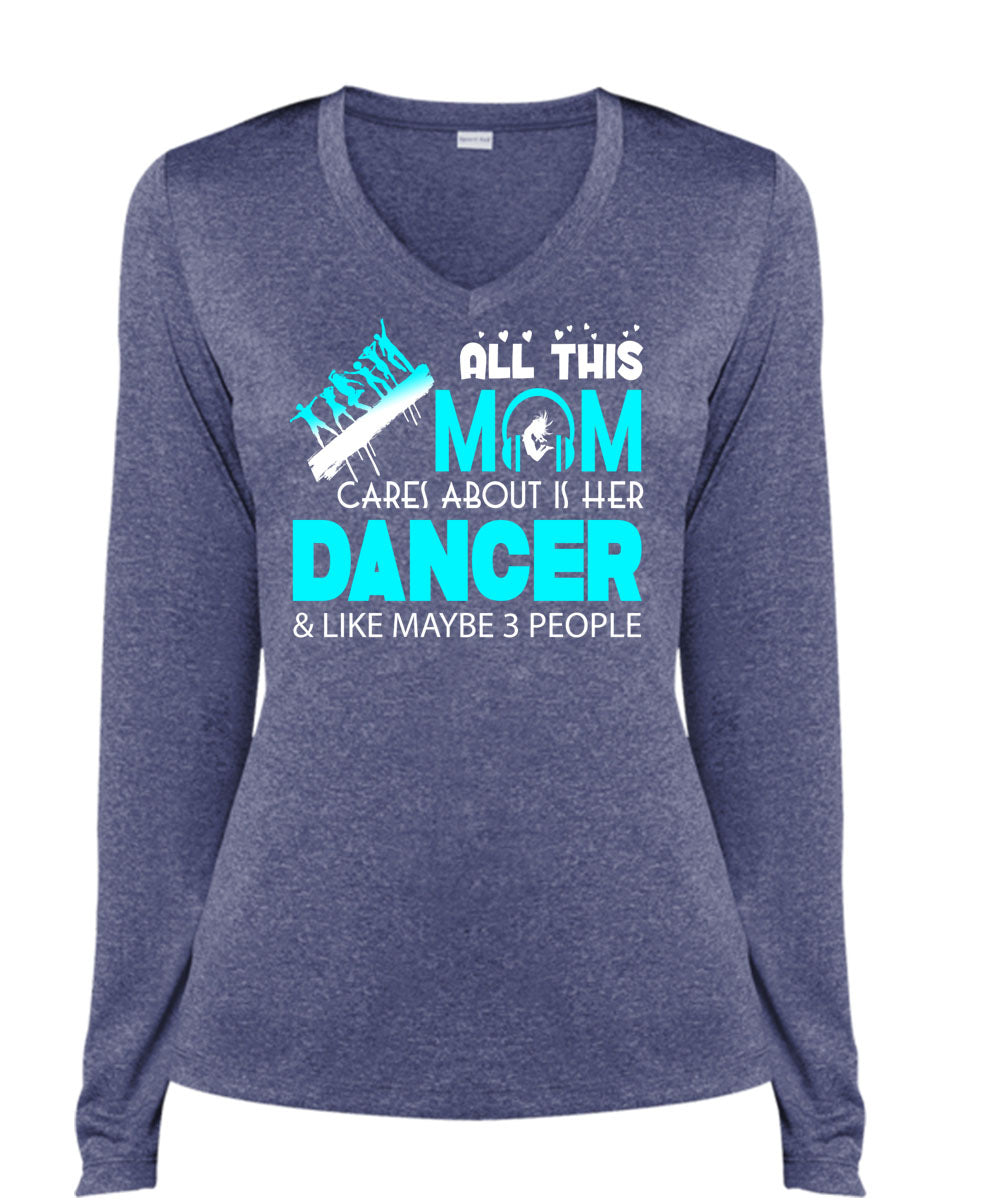 All This Mom Cares About Is Her Dancer T Shirt, Like Maybe 3 People T Shirt, Cool Shirt (Ladies LS Heather V-Neck)