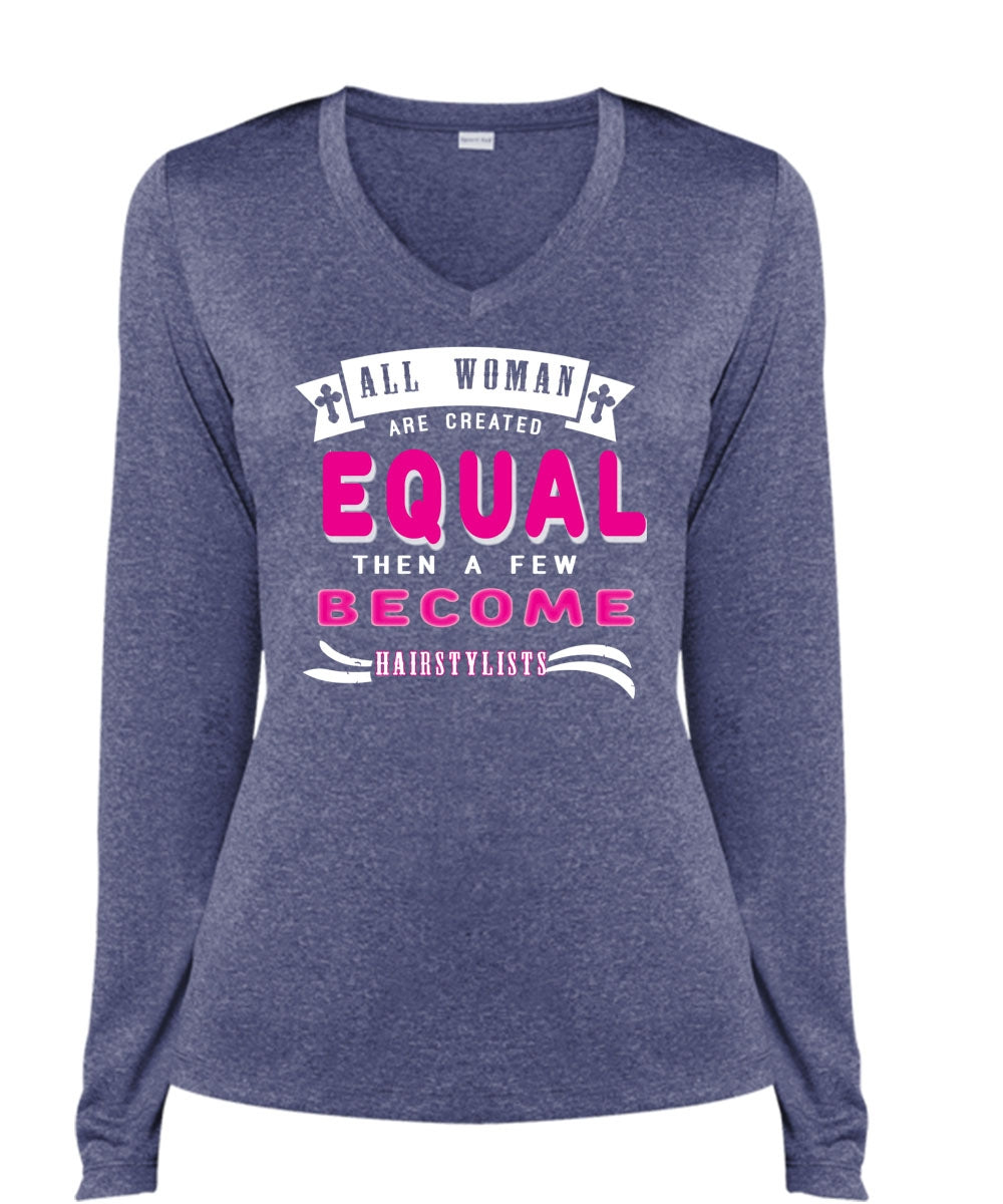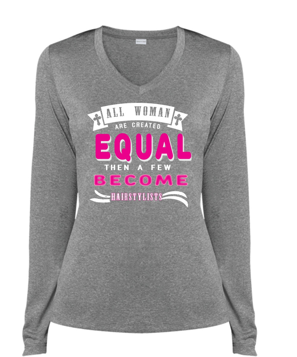 All Woman Are Created Equal Then A Few Become Hair Stylist T Shirt, Job T Shirt (Ladies LS Heather V-Neck)
