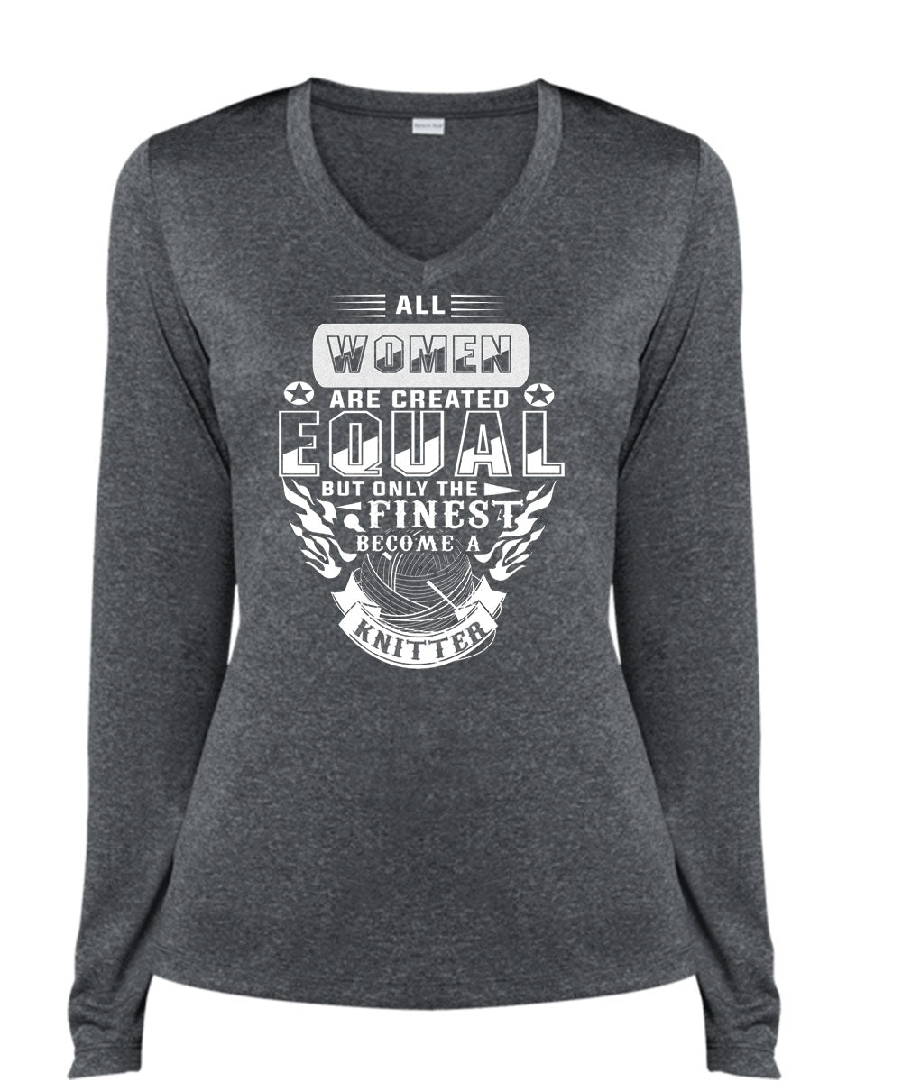 All Women Are Created Equal But Only The Finest Become A Knitter T Shirt (Ladies LS Heather V-Neck)