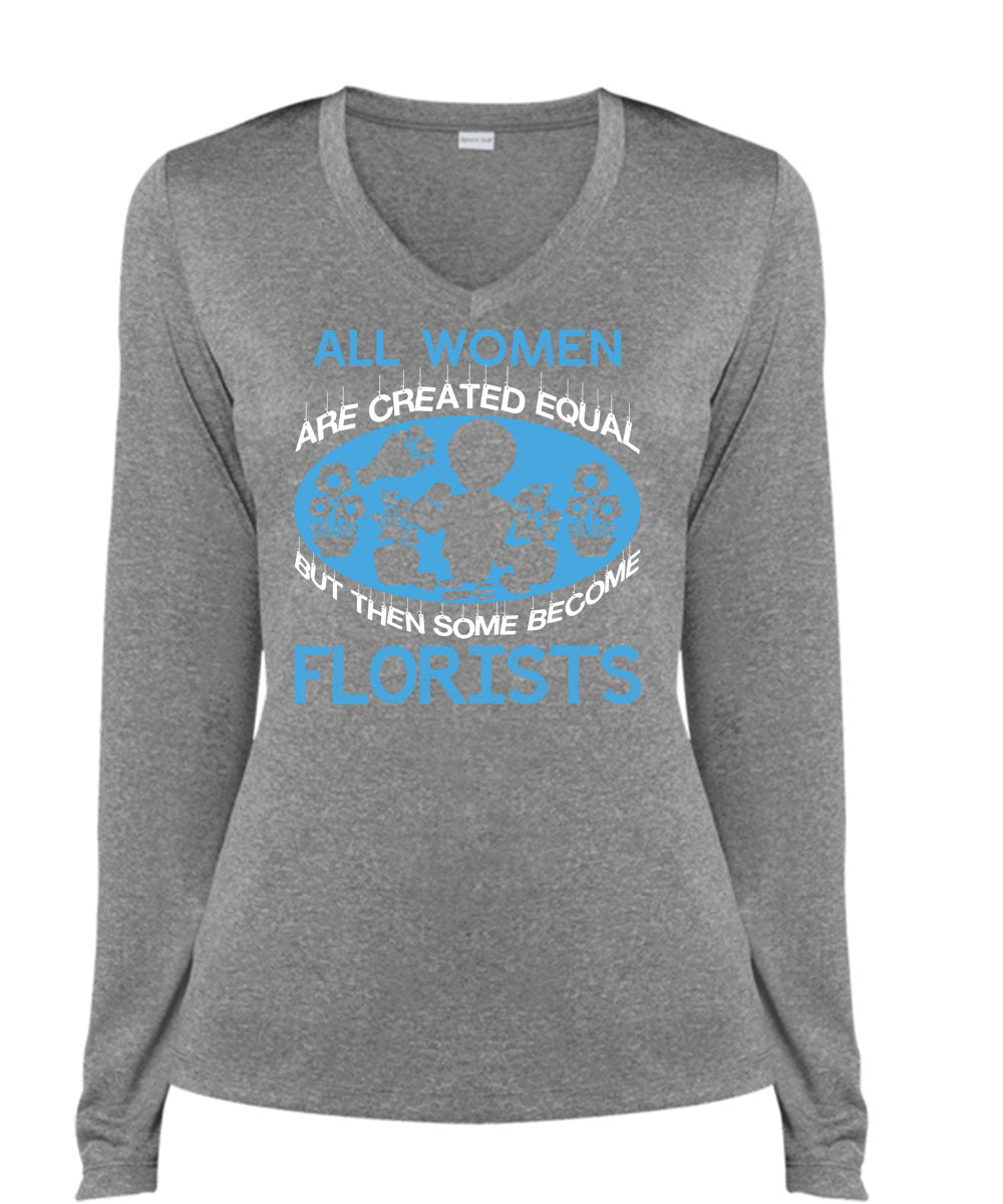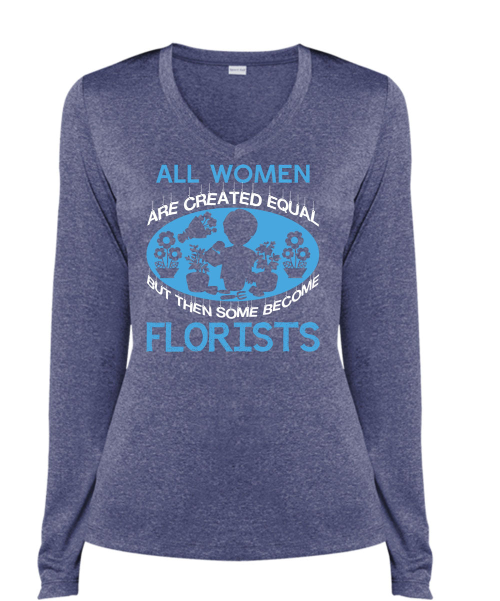 All Women Are Created Equal But Then Some Become Florist T Shirt, I Love Florist T Shirt, Cool Shirt (Ladies LS Heather V-Neck)