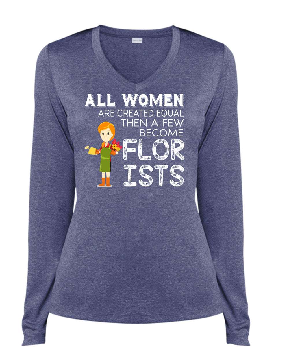 All Women Are Created Equal T Shirt, A Few Become Florists T Shirt, Cool Shirt (Ladies LS Heather V-Neck)
