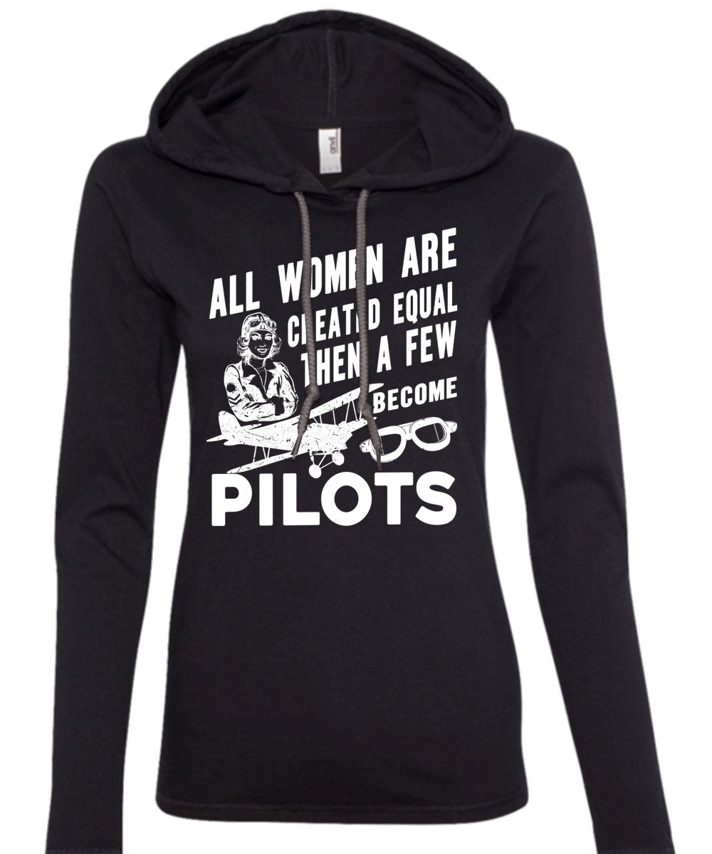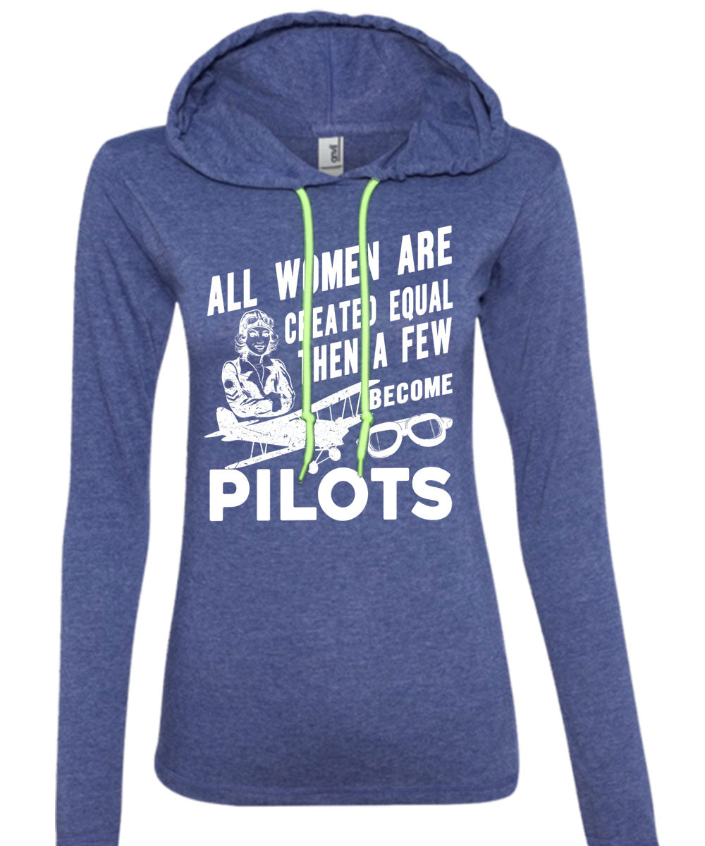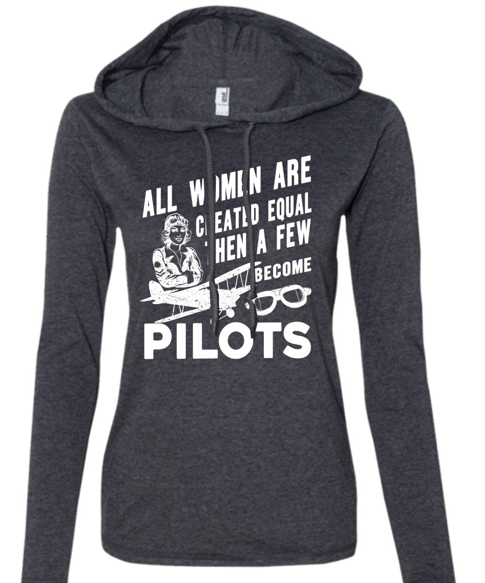 All Women Are Created Equal T Shirt, A Few Become Pilots T Shirt (Anvil Ladies Ringspun Hooded)
