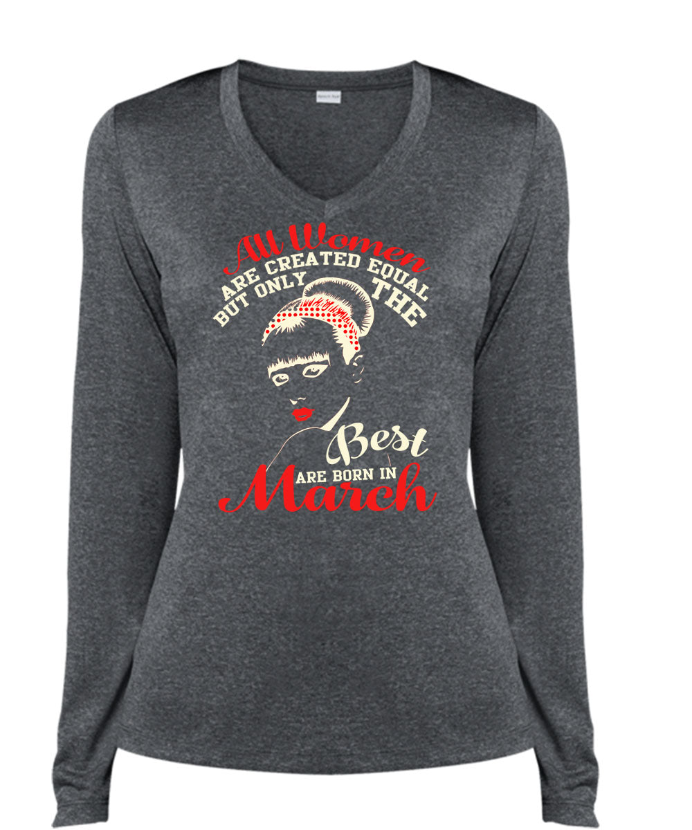 All Women Are Created Equal T Shirt, Only The Best Are Born In March T Shirt, Cool Shirt (Ladies LS Heather V-Neck)