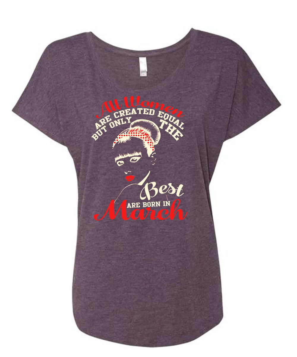 All Women Are Created Equal T Shirt, Only The Best Are Born In March T Shirt, Cool Shirt (Ladies' Triblend Dolman Sleeve)