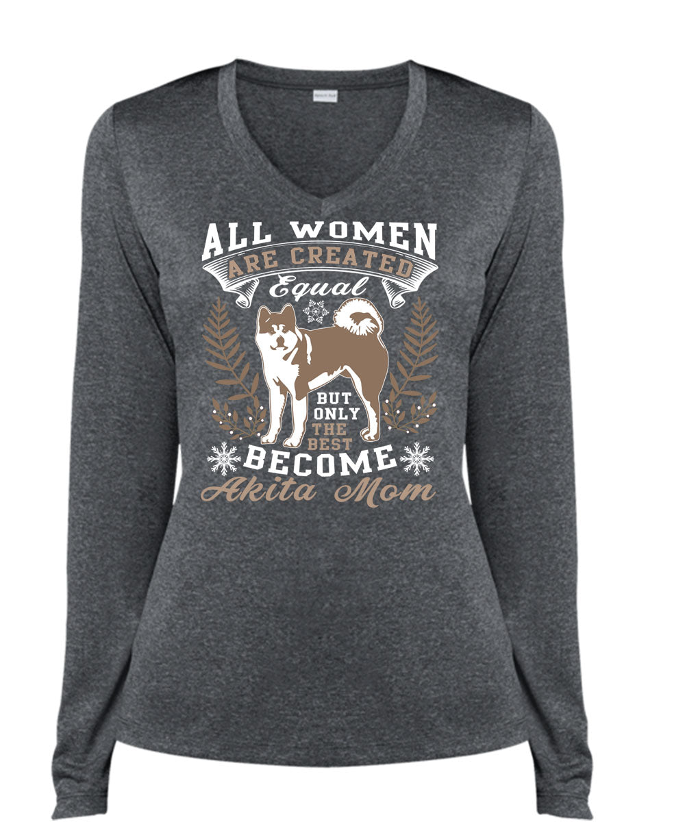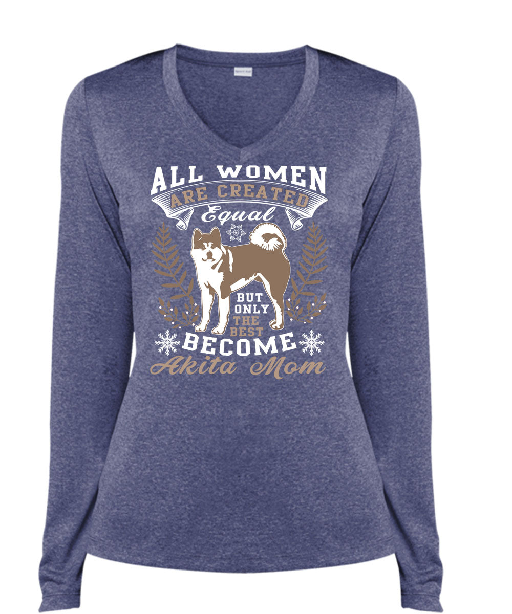 All Women Are Created Equal T Shirt, Only The Best Become Akita Mom T Shirt, Cool Shirt (Ladies LS Heather V-Neck)