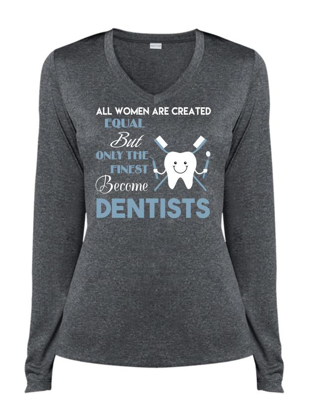 All Women Are Created Equal T Shirt, Only The Finest Become Dentists T Shirt, Cool Shirt (Ladies LS Heather V-Neck)