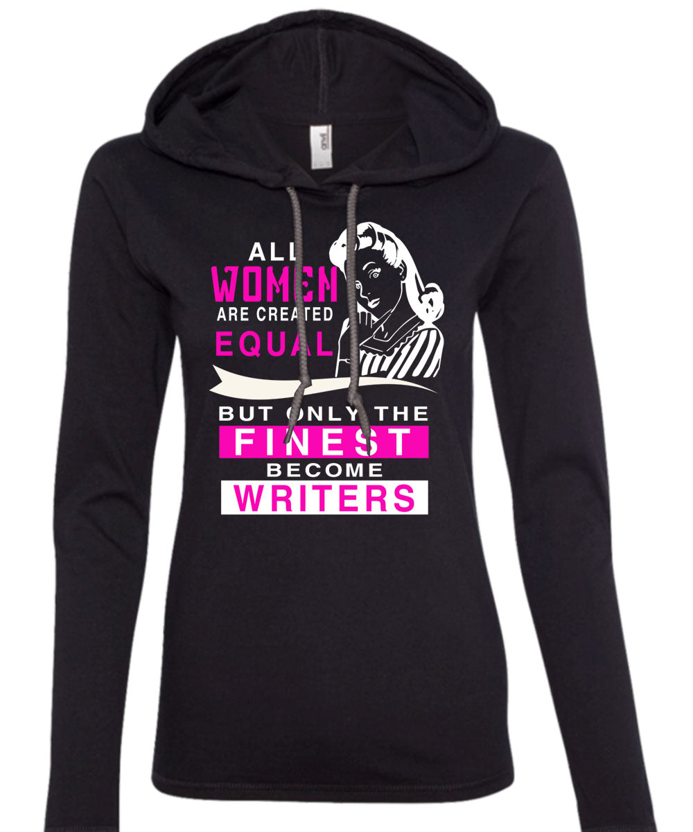 All Women Are Created Equal T Shirt, Only The Finest Become Writers T Shirt (Anvil Ladies Ringspun Hooded)