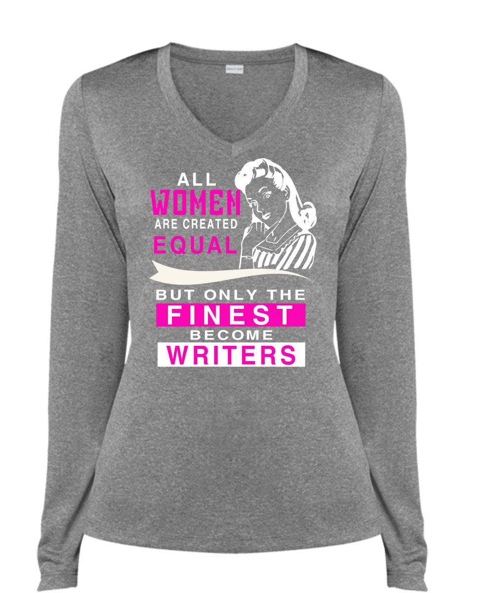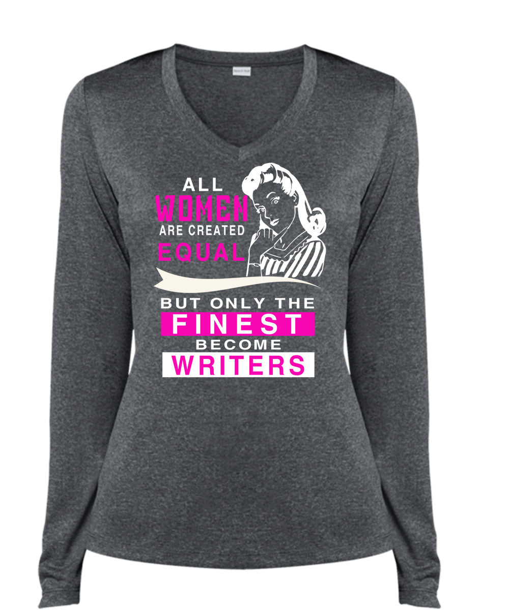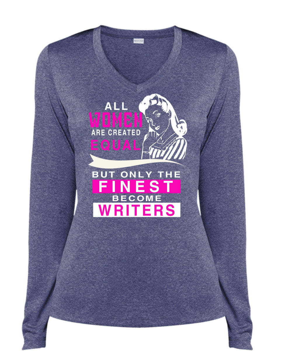 All Women Are Created Equal T Shirt, Only The Finest Become Writers T Shirt, Cool Shirt (Ladies LS Heather V-Neck)