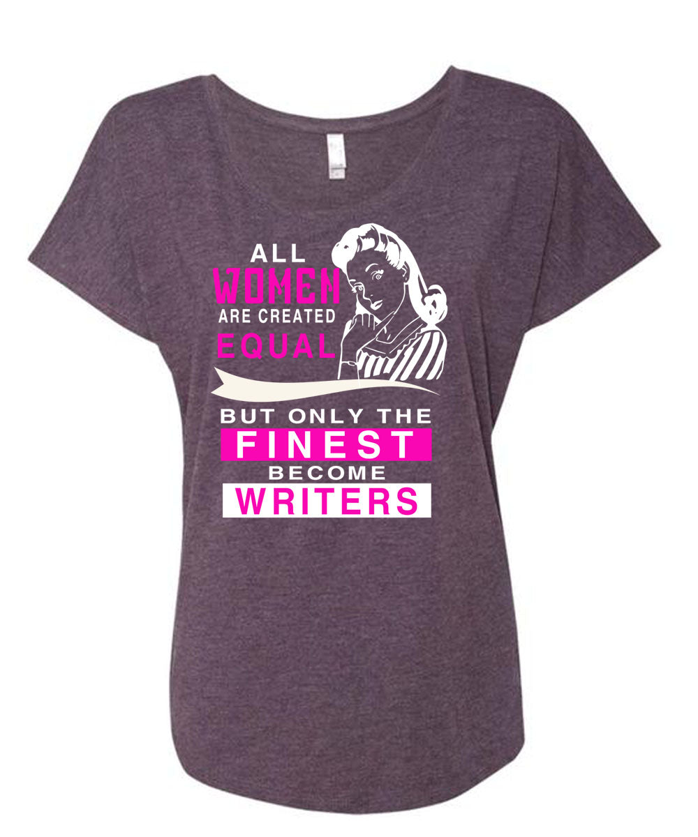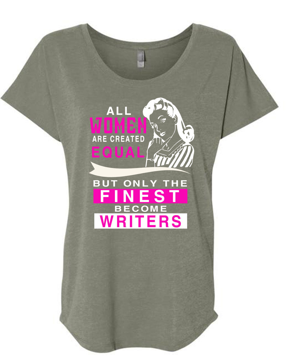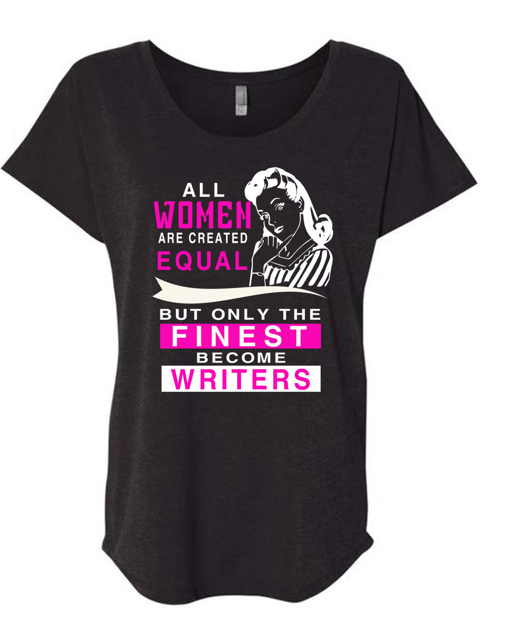 All Women Are Created Equal T Shirt, Only The Finest Become Writers T Shirt, Cool Shirt (Ladies' Triblend Dolman Sleeve)