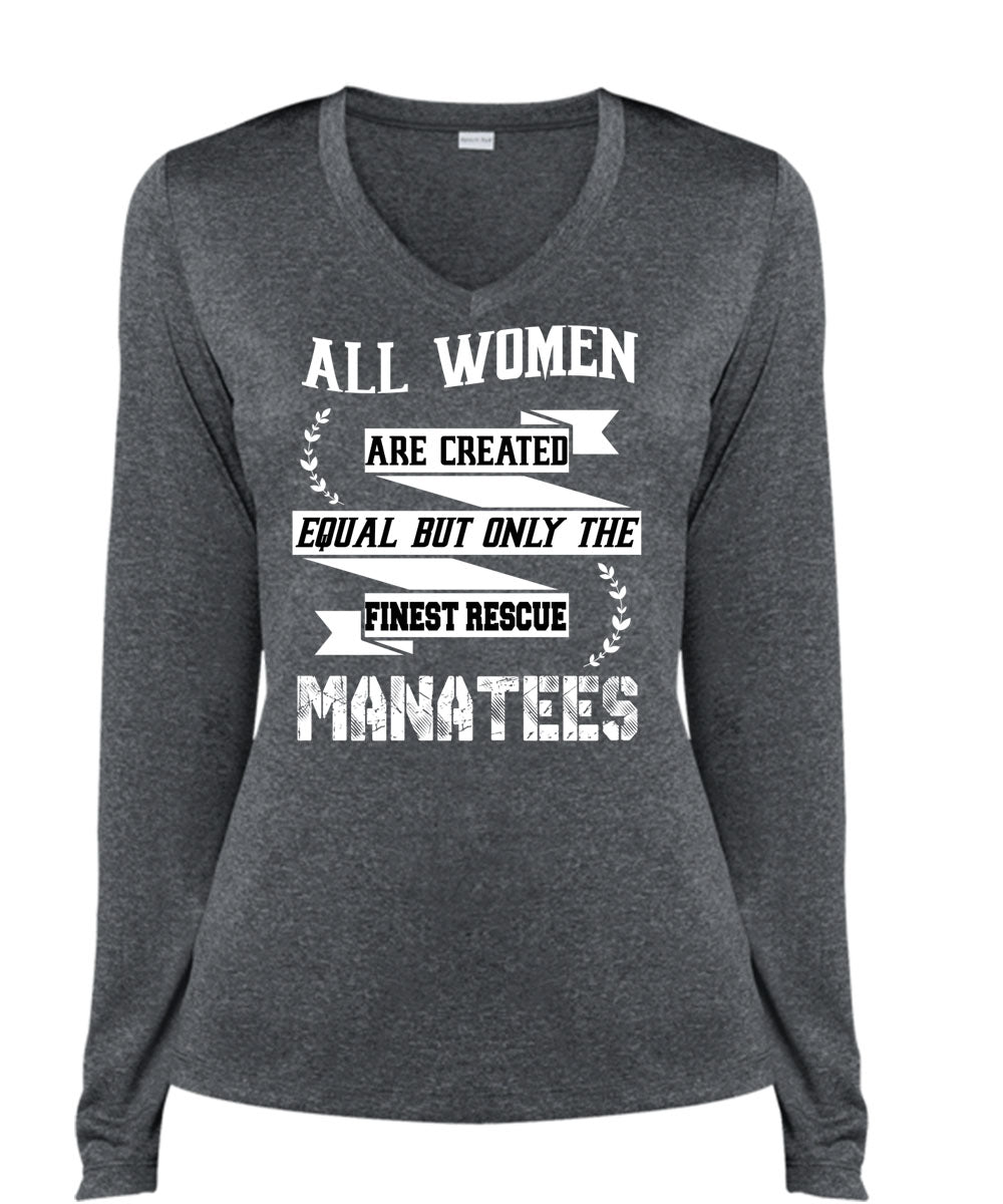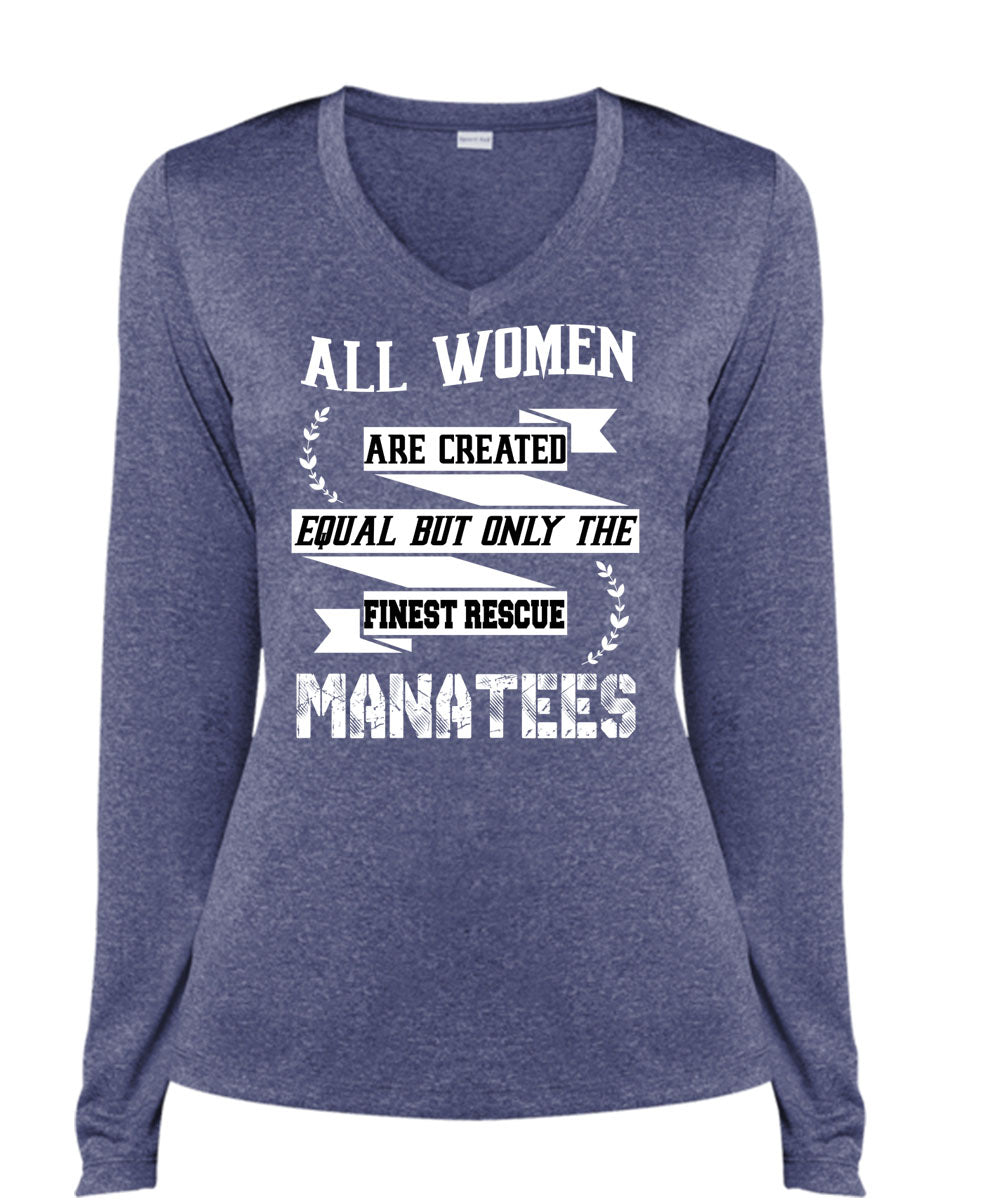 All Women Are Created Equal T Shirt, Only The Finest Rescue Manatees T Shirt, Cool Shirt (Ladies LS Heather V-Neck)