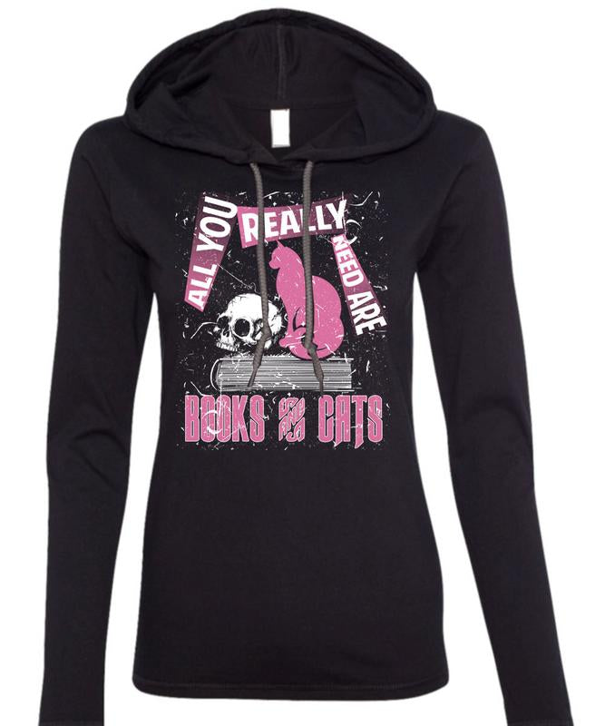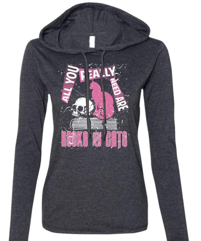 All You Really Need Are Books And Cats T Shirt, My Favorite T Shirt (Anvil Ladies Ringspun Hooded)
